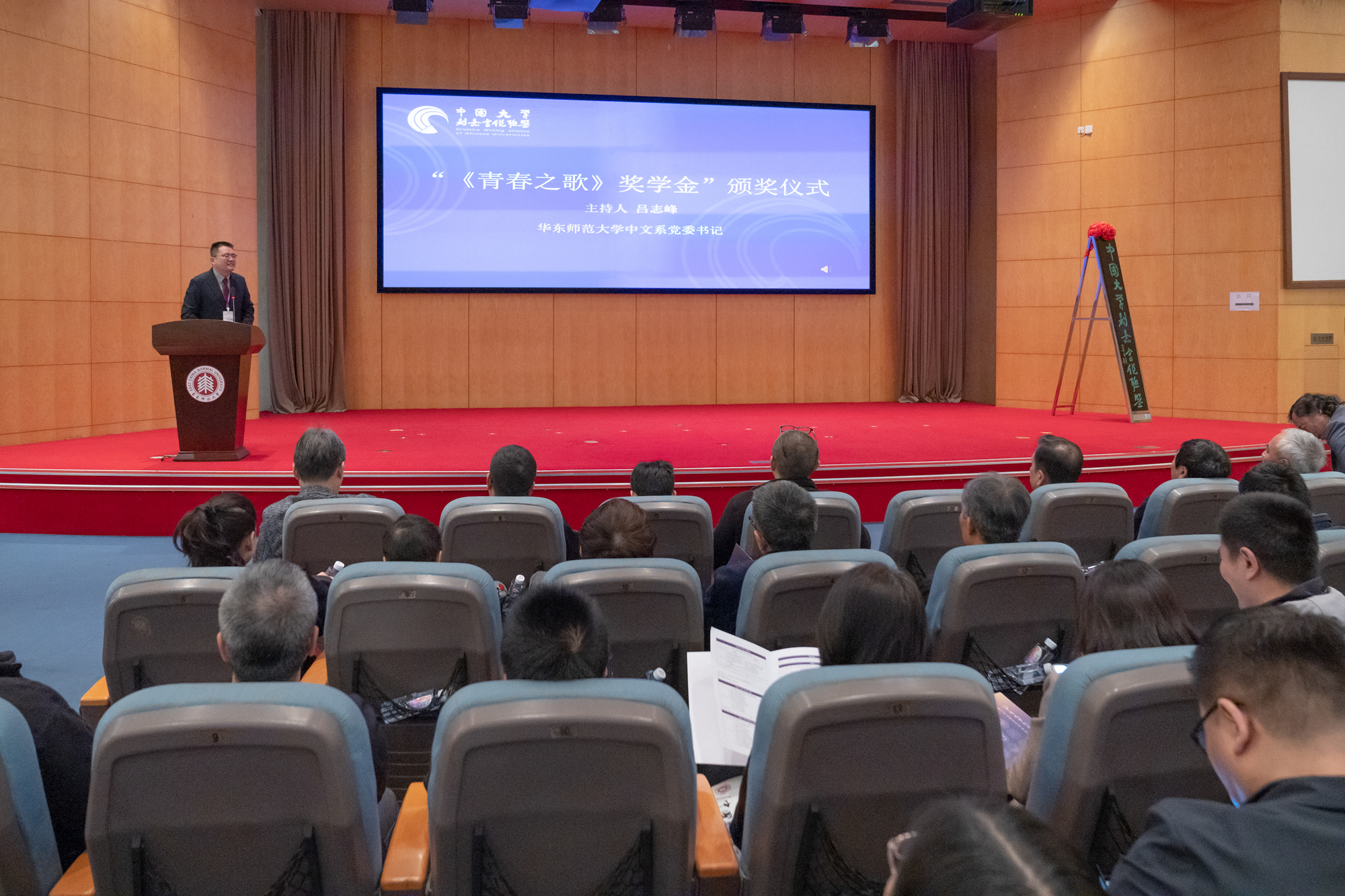 成立大会的最后环节,是面向青年学子的“《青春之歌》奖学金”颁奖仪式。永利皇宫登录官网中文系党委书记吕志峰主持颁奖。