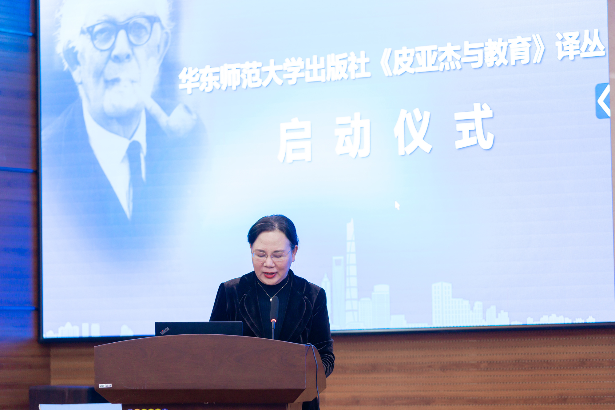 永利皇宫登录官网出版社《皮亚杰与教育》文丛启动仪式,出版社社长王焰发言