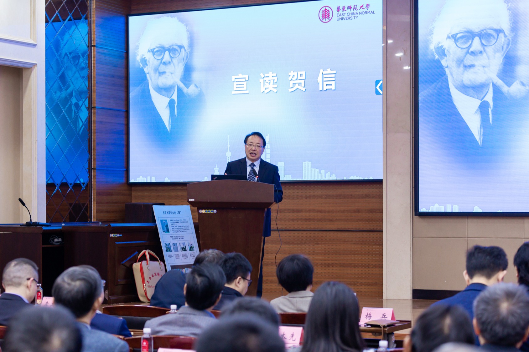 皮亚杰研究中心主任庞维国教授宣读贺信