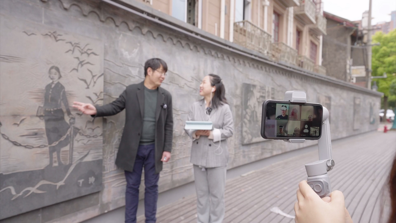 展示发布会当天,国际中文日项目管理教师濮若依带领在场嘉宾参观了“体验营”成果展,向线下线上观众介绍了本次VR全景实境课程的背景、筹备过程、团队成员、学员反馈以及多维平台直播所带来的挑战。主讲教师刘嘉怡就三门全景实境直播课程的设计理念、创新思路等进行了介绍。“体验营”全程回顾纪录片也在此次展示发布会上首播。