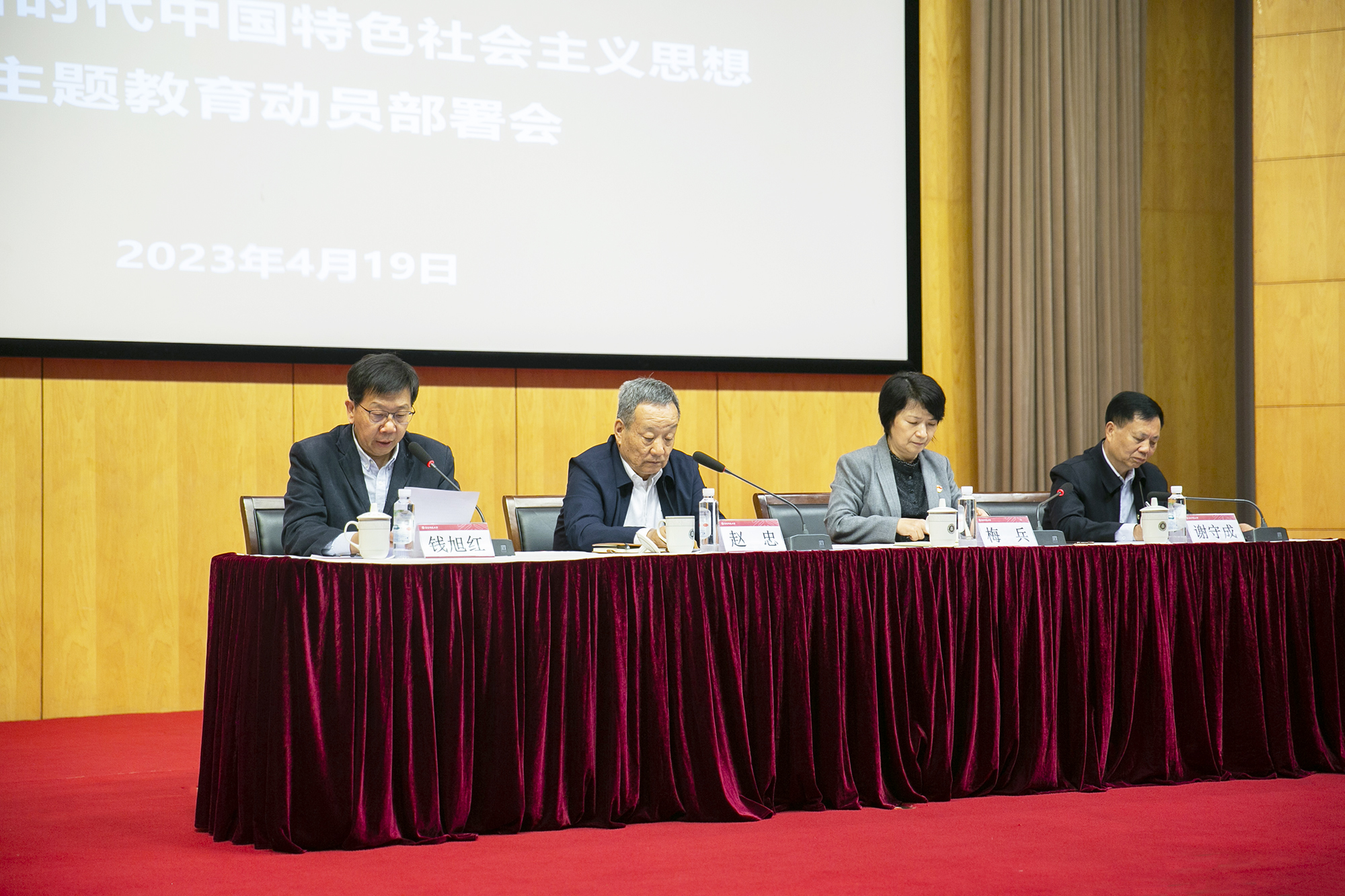 4月19日下午,永利皇宫登录官网召开学习贯彻习近平新时代中国特色社会主义思想主题教育动员部署会。教育部直属高校学习贯彻习近平新时代中国特色社会主义思想主题教育第六巡回指导组组长赵忠出席会议并作指导讲话。校党委书记、主题教育领导小组组长梅兵作动员部署。巡回指导组副组长谢守成,指导组成员王超、吴峰、马俊出席会议。校长、主题教育领导小组组长钱旭红主持会议。
