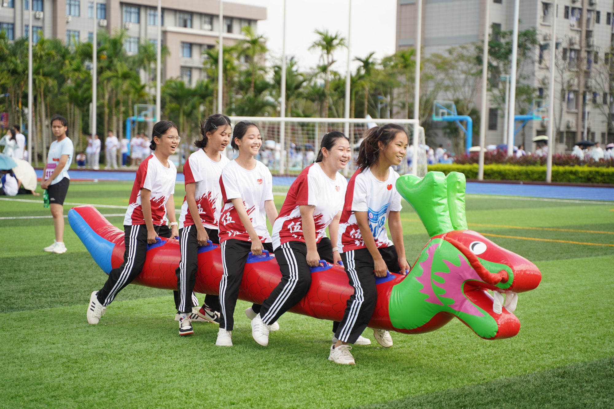 学校遵循“文化育人,以情治校,阳光管理,微笑服务”的管理理念,把“五育融合”理念全方位弥漫、渗透、贯穿于学校教育生活的全过程。学校实施精细化管理、研修性教学、个性化培养、普惠制服务,为华迈学子提供优质的教育服务。开展学习任务单式“三线合一”(知识发生线、思维发展线和认知建构线)课堂教学实践;学校对课程体系进行整体建构,整体考虑学校特色品牌的创建和学生发展的需求,聚焦“新科创”,构建了IBST(Integrated Biology,Science and Technology)海洋与科技综合课程,将生命科学、信息技术、海洋科学等和地球系统的相关内容整合起来,逐步形成多类型、多层级、相互关联的科技类和海洋类课程,形成了“两翼三类十大主轴”的课程体系:“两翼”是指“海洋+科技”,“三类”是循序渐进的“通识课程”“特色课程”“专题课程”三类课程。