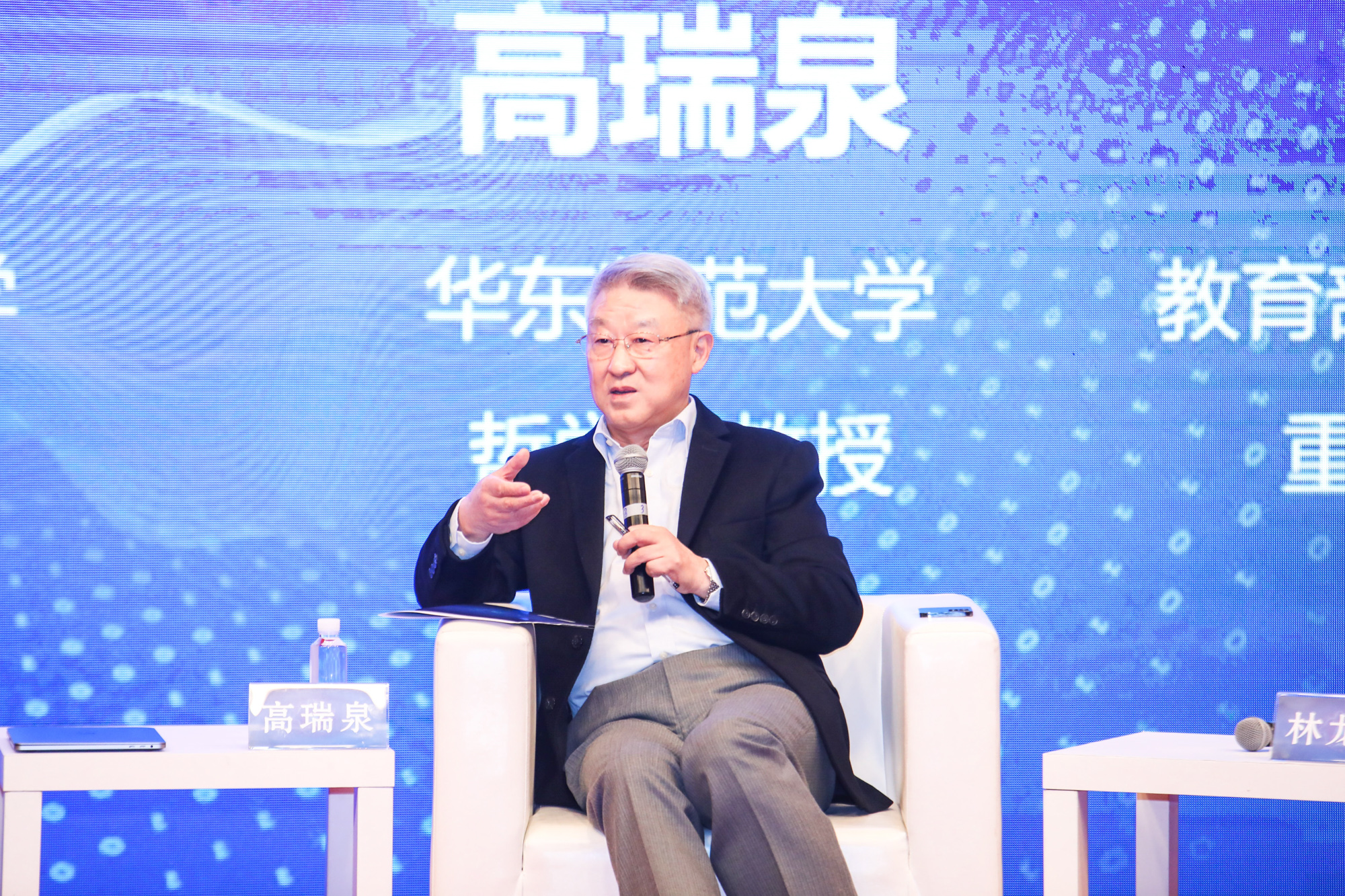 上海人工智能实验室主任助理王延峰、浙江大学上海高等研究院常务副院长吴飞、永利皇宫登录官网设计学院院长魏劭农就“人工智能与教育”这一主题开展对话,永利皇宫登录官网教育学部主任袁振国主持对谈。在对谈中,袁振国提出人工智能在教育场景当中的运用,不仅是赋能,新的形态的创造才是人工智能引起教育变革、重塑未来形态的真正意义。