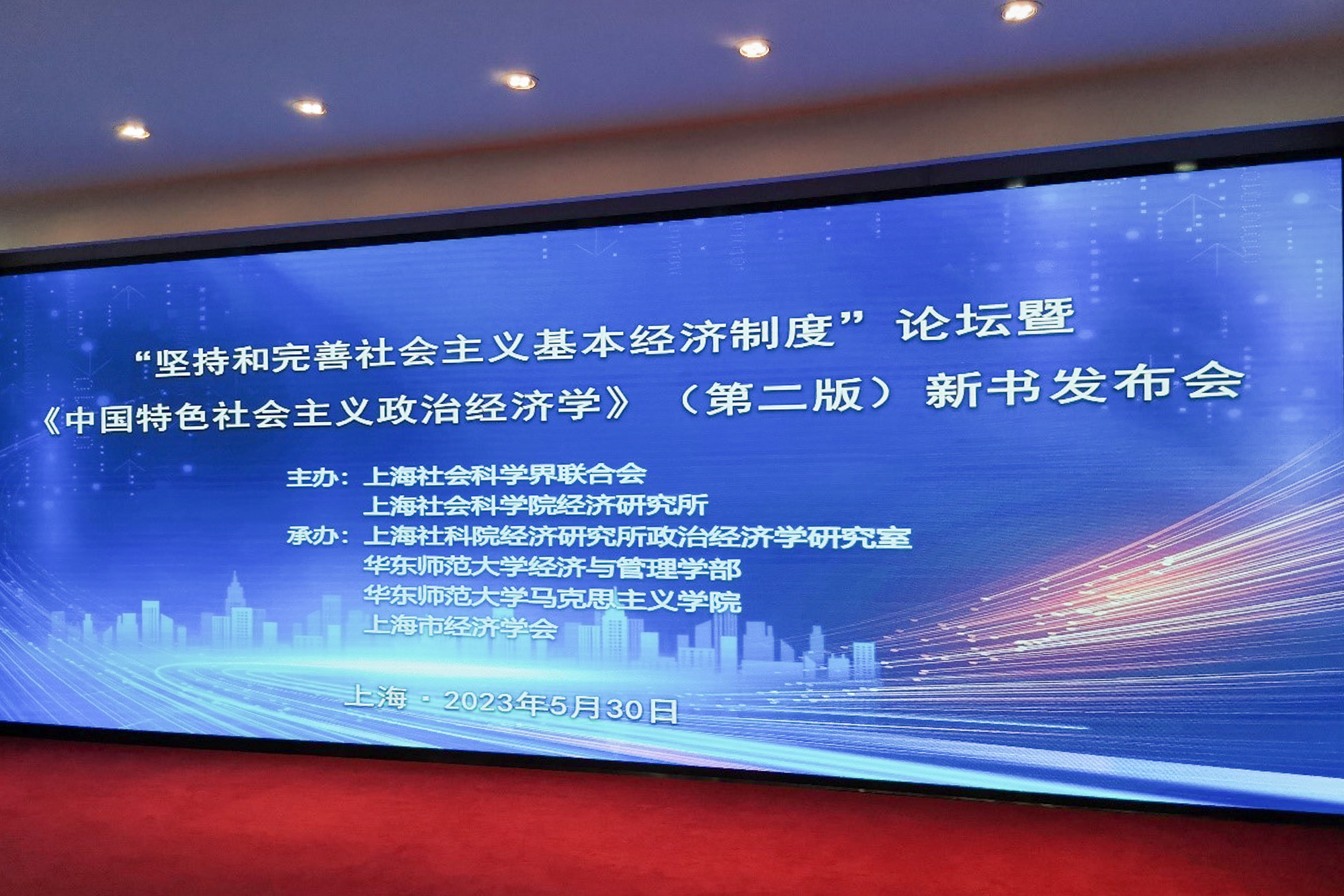 5月30日,“坚持和完善社会主义基本经济制度”论坛暨《中国特色社会主义政治经济学》(第二版)新书发布会在上海社科院小礼堂举行。此次会议由上海市社会科学界联合会和上海社科院经济研究所主办,由上海社科院经济研究所政治经济学研究室、永利皇宫登录官网经管学部、永利皇宫登录官网马克思主义学院、上海市经济学会和上海生产力学会等单位承办。