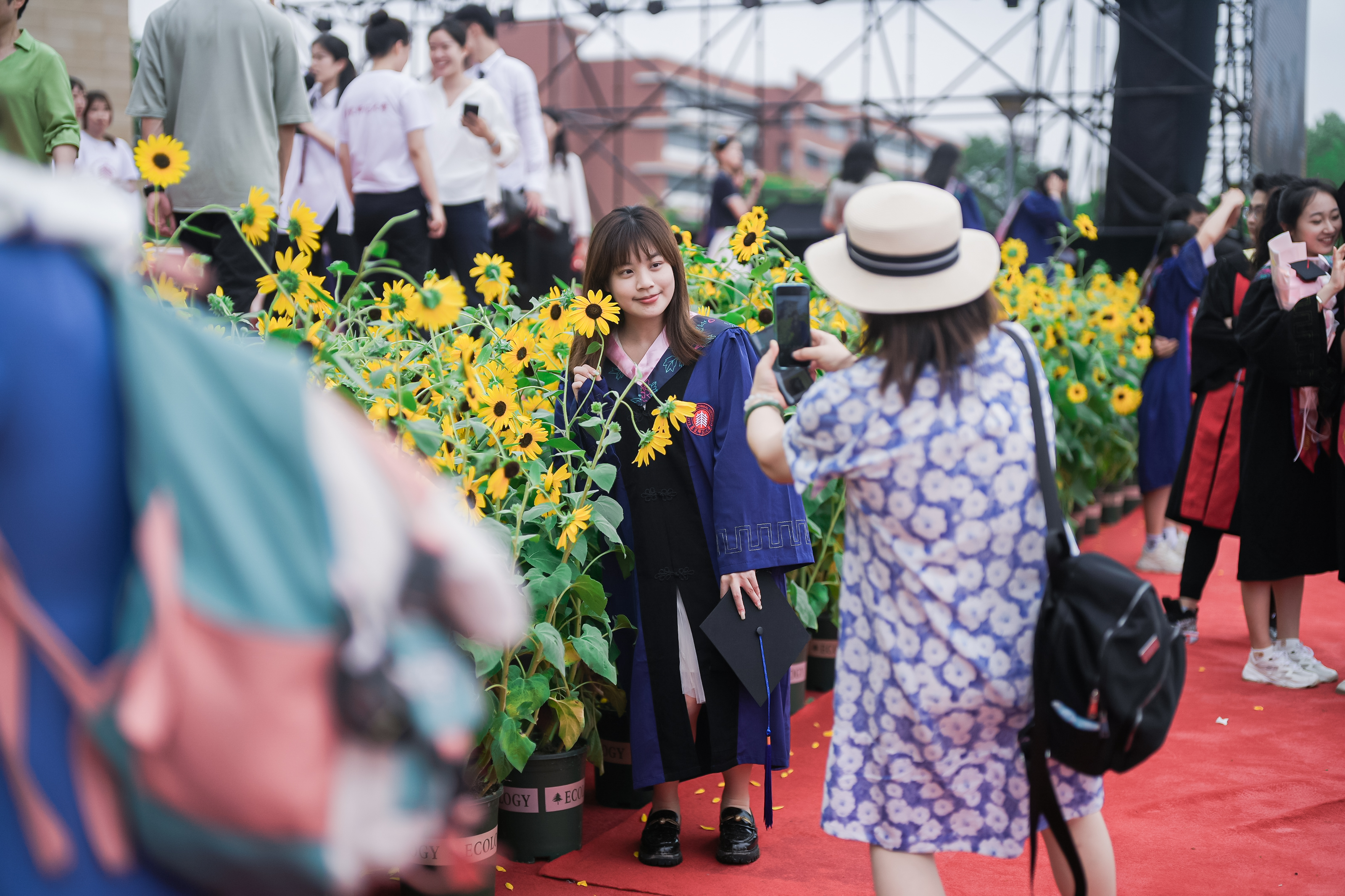 从2014年起,华东师大为每一届毕业生种植一片六月盛开、寓意美好的“毕业花”。今年,学校在两校区种植了面积约1600㎡的24000多株经学生投票选出的毕业花——象征着希望的向日葵。