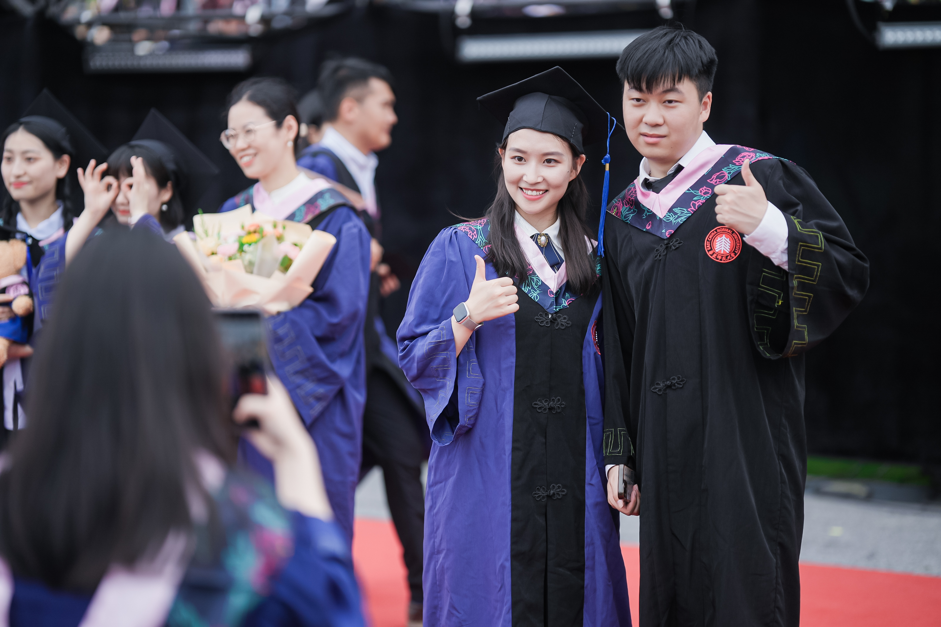 毕业典礼由全国创新争先奖、上海市青年科技杰出贡献奖获得者,化学与分子工程学院教授姜雪峰和传播学院2023届研究生杨晨一起主持,通过华东师大官方微信视频号、微博、B站、抖音、央视频客户端向全球进行直播,截止发稿点击量破80万。