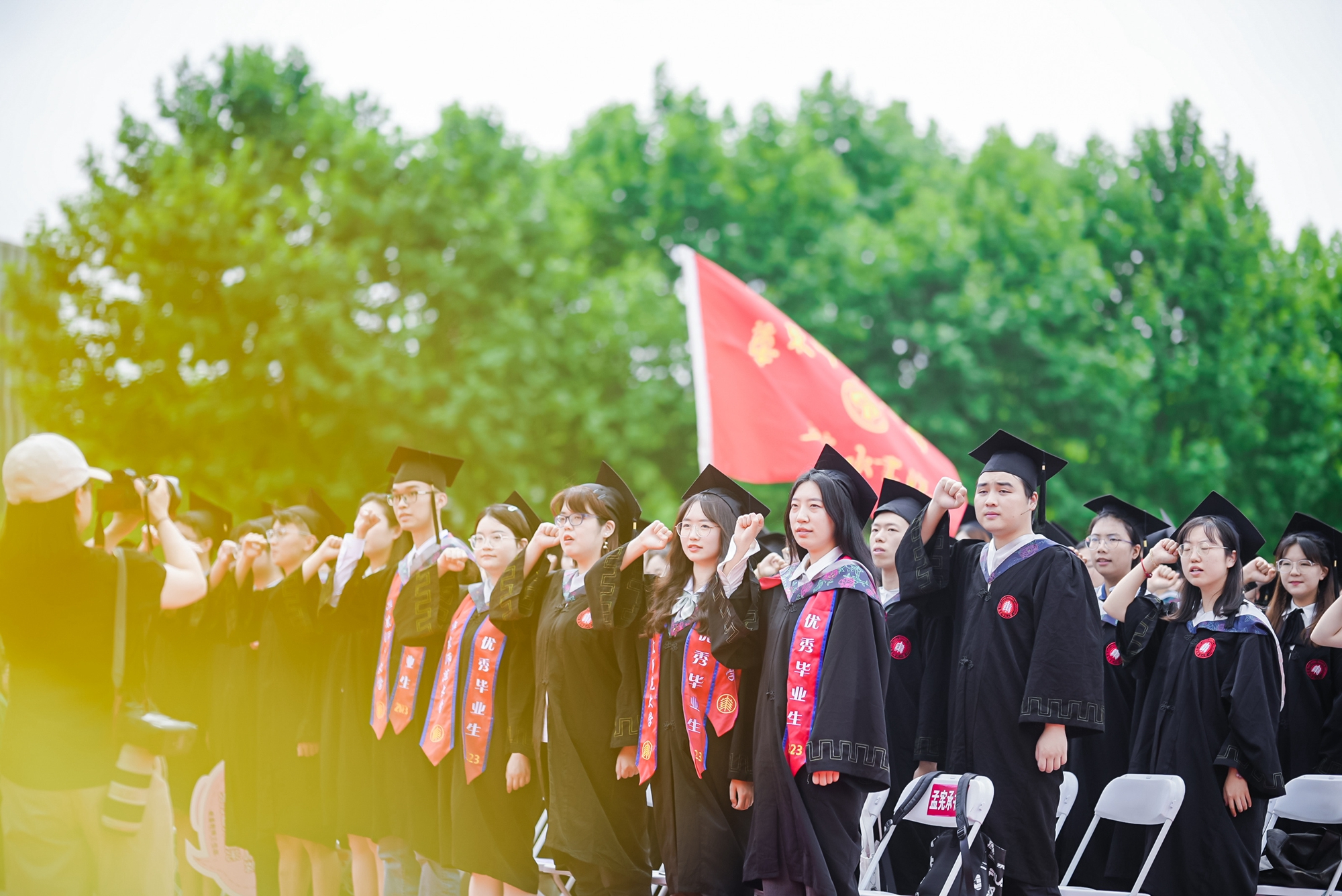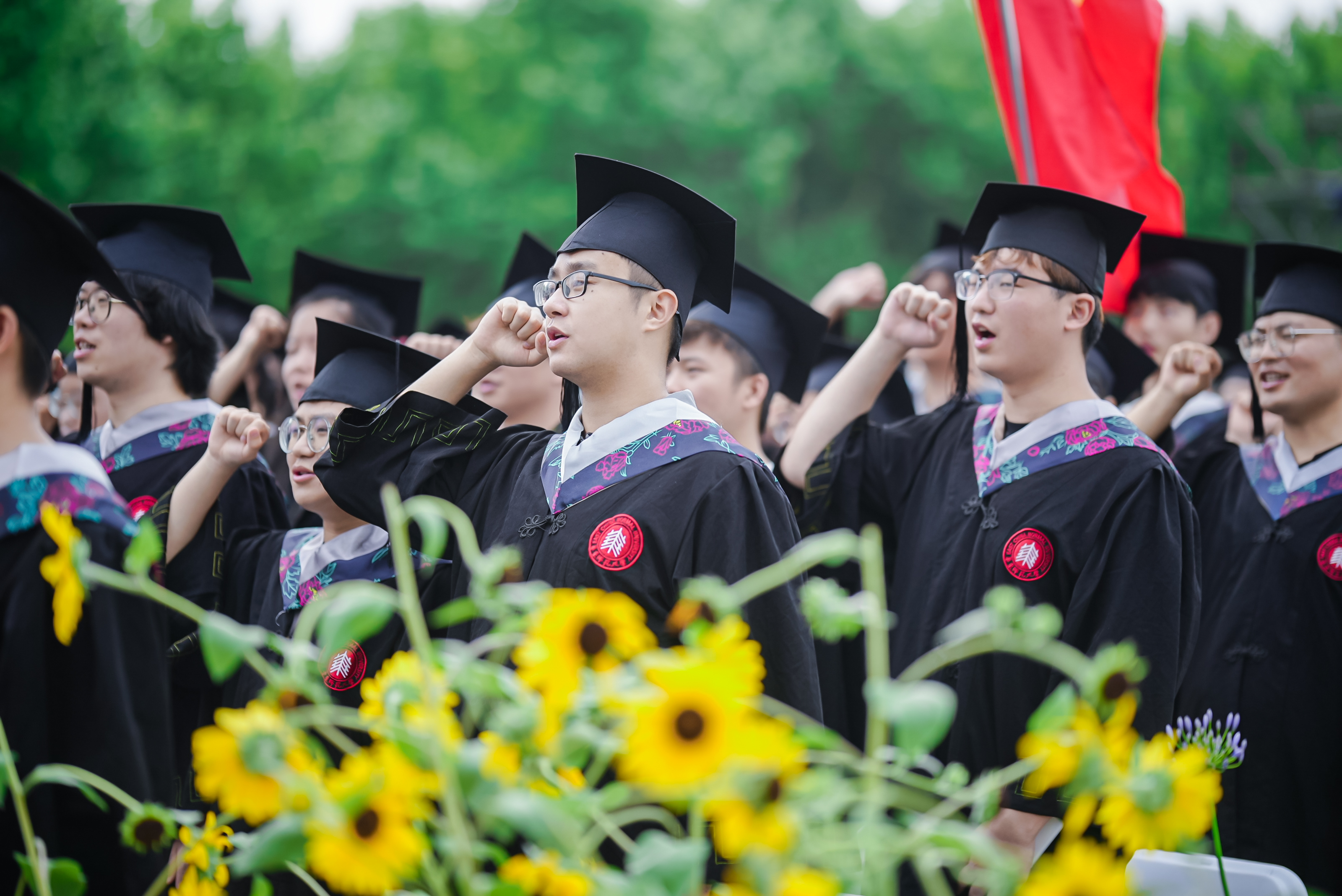 当合唱团演唱的《强国一代有我在》的歌声响起,将毕业典礼推向了高潮。“追求卓越,逐梦远航!” 在飘扬的校旗下,在全体毕业生一声声激情澎湃的宣誓声中,华东师大毕业生扬帆起航,逐梦而行,将用智慧和汗水书写更加精彩的报国篇章。