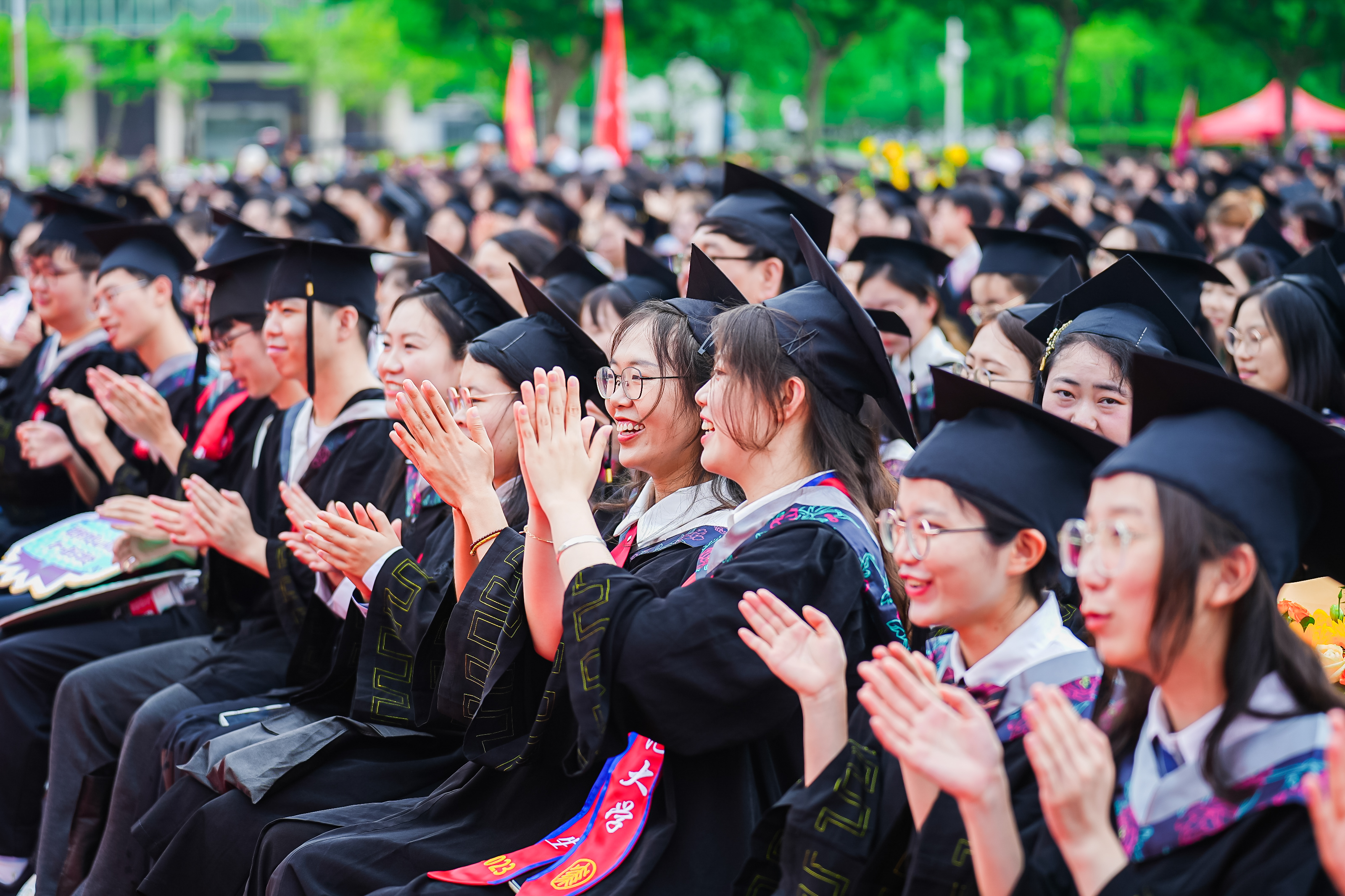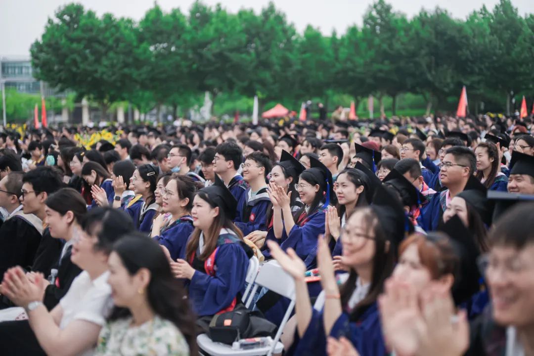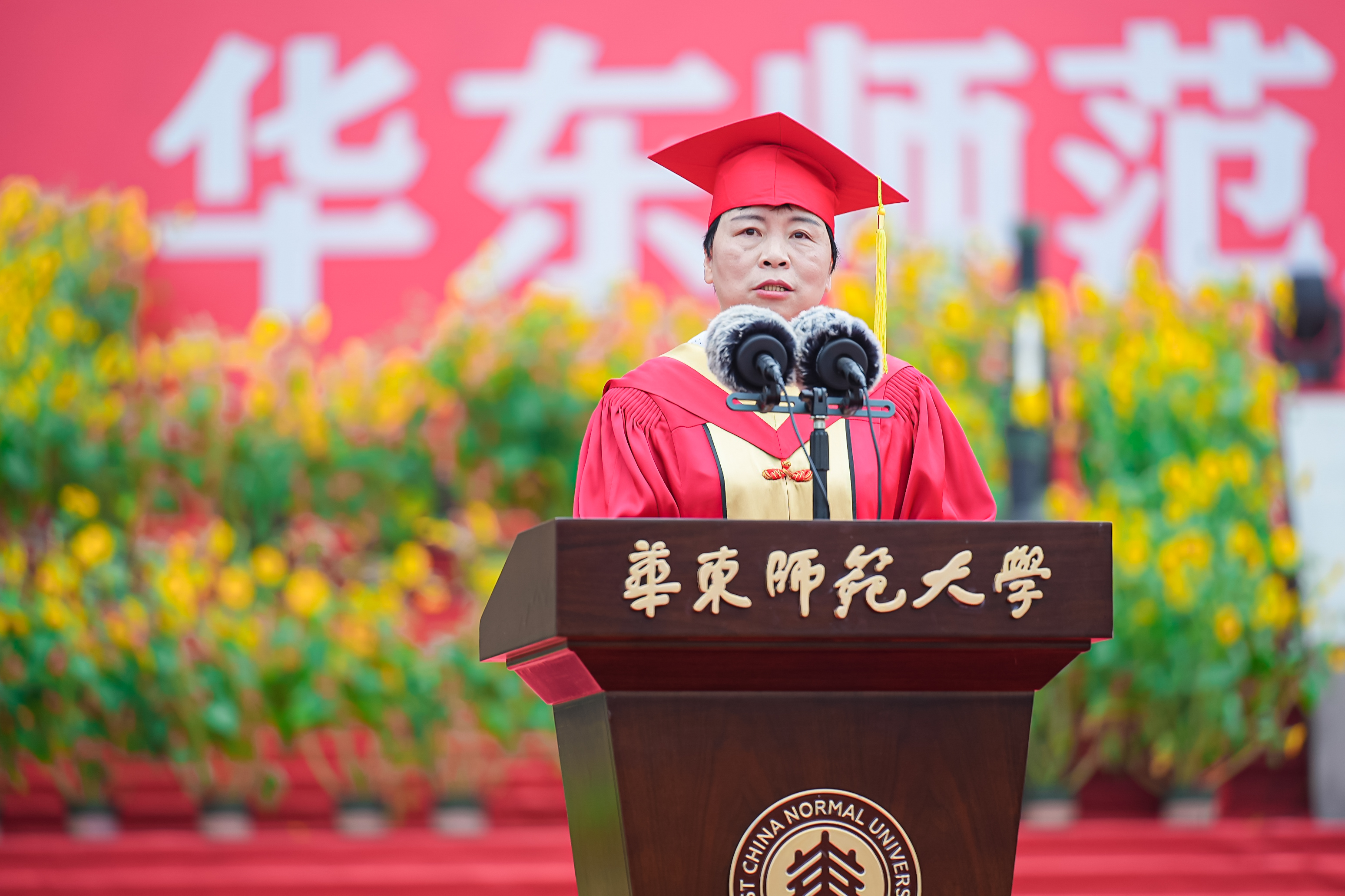 华东师大8000多名毕业生欢聚一堂。校领导梅兵、钱旭红、杨昌利、曹友谊、孟钟捷、周傲英、戴立益、雷启立、顾红亮、施国跃,校长助理,校学术委员会和各专门委员会负责人,学部、院系、书院负责人,机关职能部门和直属单位负责人,校友代表,教师代表,员工代表,毕业生亲友,教育部直属高校学习贯彻习近平新时代中国特色社会主义思想主题教育第六巡回指导组成员等出席典礼,一起见证华东师大学子完成学业开启人生新征程的重要时刻,为毕业生扬帆启航。