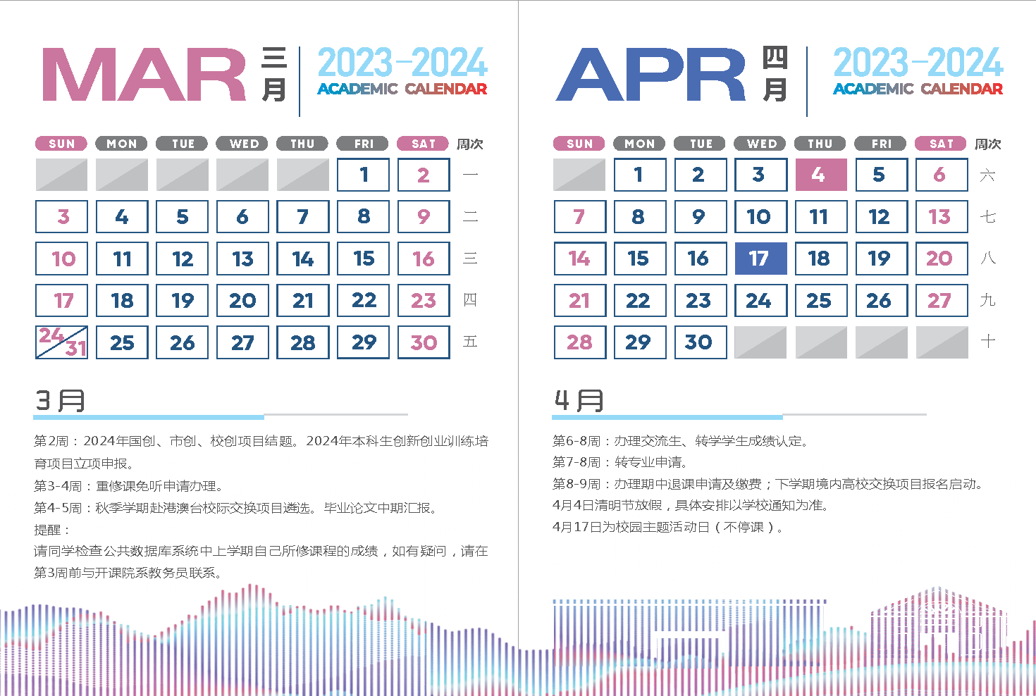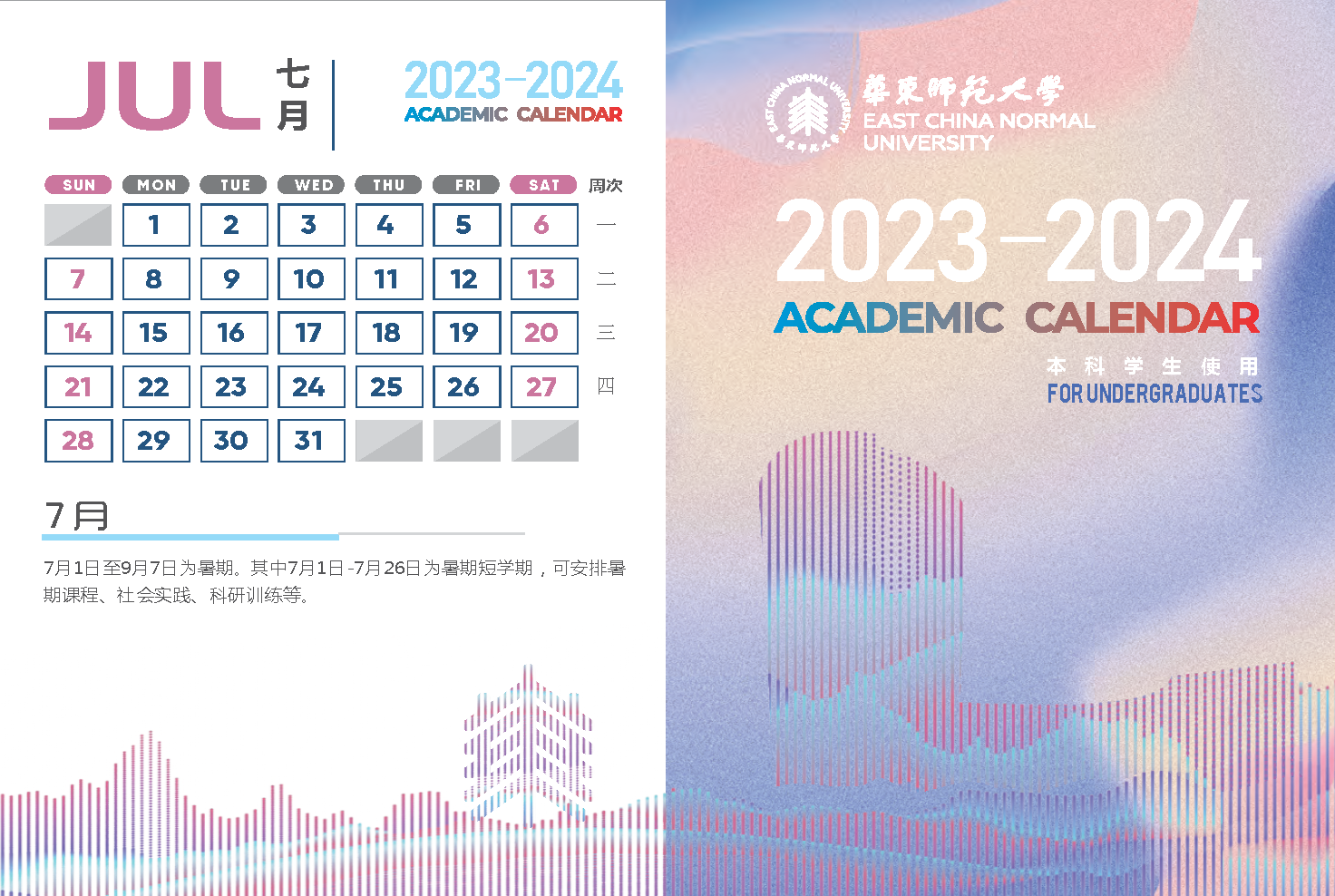 9月11日至2024年1月5日为教学周,1月8日至12日为期末考试周。全校通识课、辅修专业自第1周起上课。