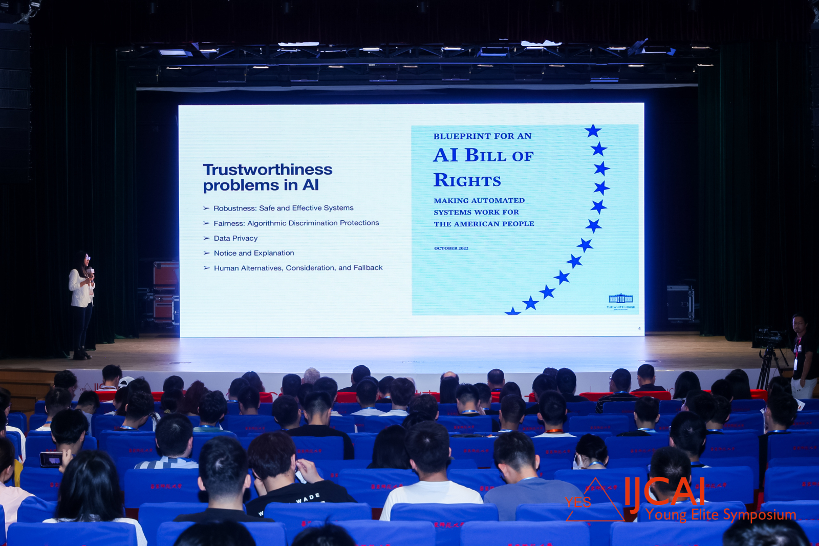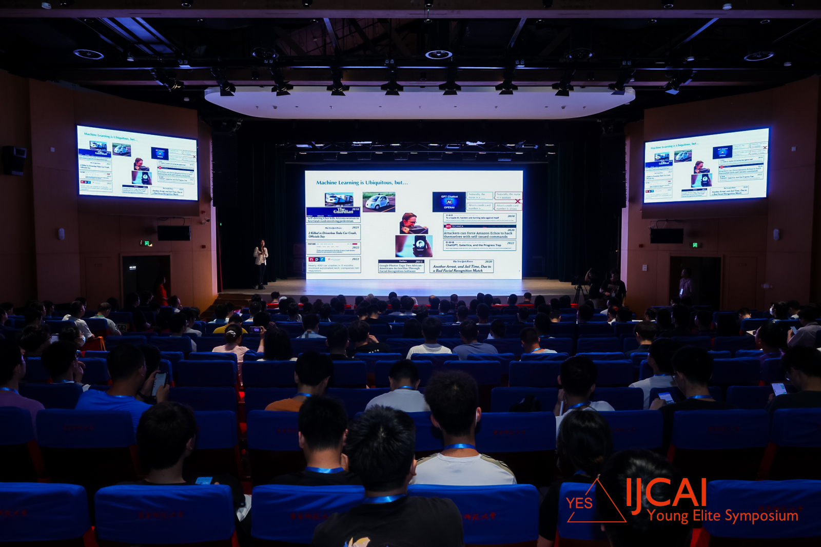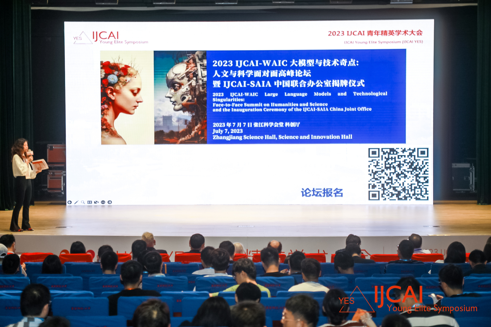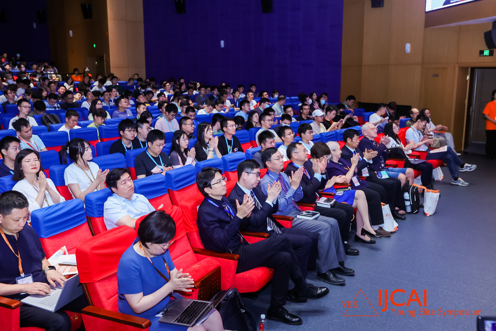 阔别线下两年已久,2023 IJCAI YES 终于在万众瞩目下再次回归。本次开幕式上,现场高朋满座、座无虚席。主题演讲期间,参会者们全神贯注,认真聆听,时常记录重点。