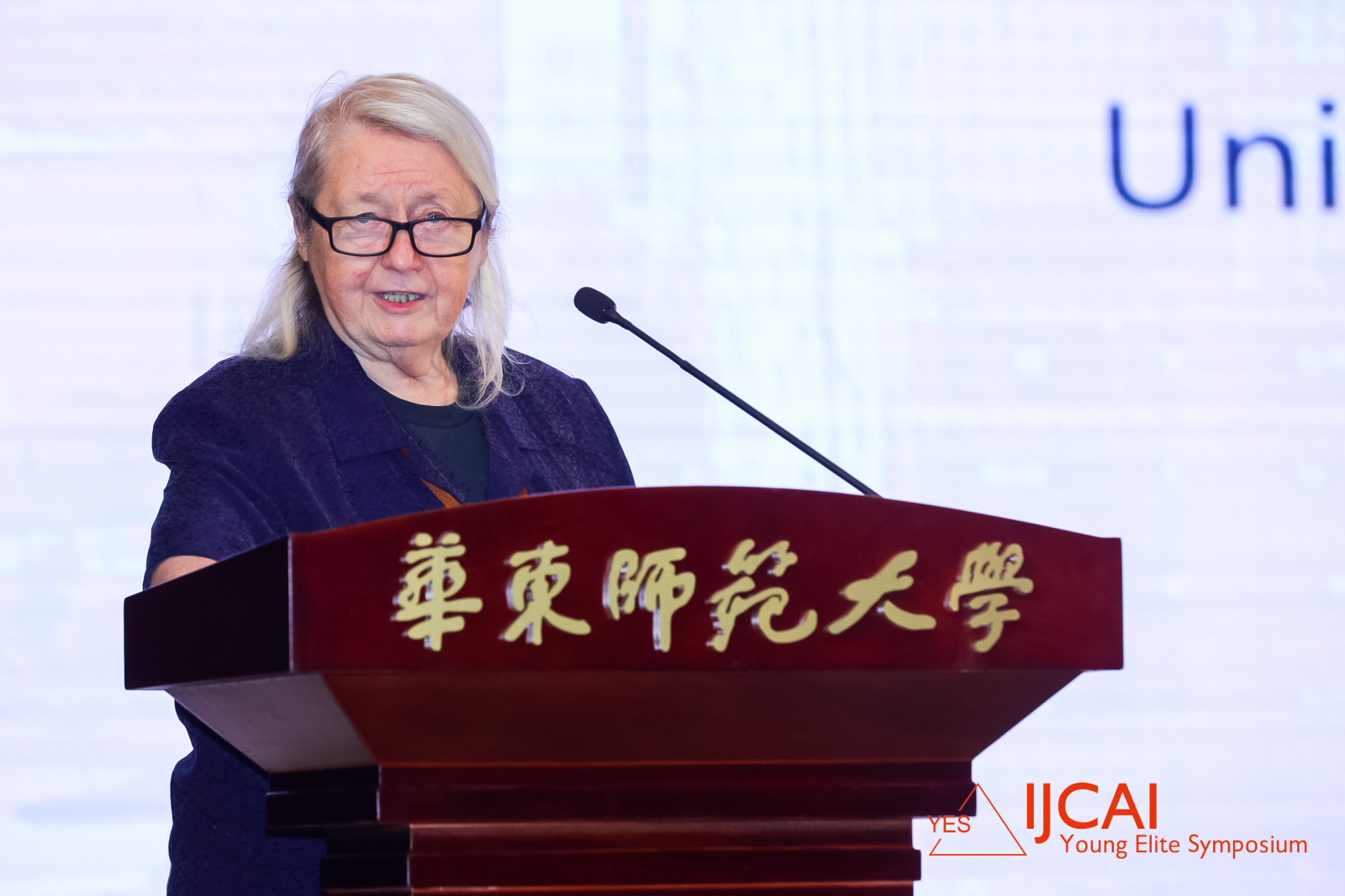 明尼苏达大学教授、IJCAI理事会理事 Maria Gini 在致辞中,对所有与会者的到来表示诚挚感谢,她将在场的青年学者比喻为年轻有为的明日之星,将其称作未来的希望。她向主办方及组委会对本次大会的付出和支持再一次表达感谢,同时向各位与会者发出诚挚邀请,邀请在座青年学者参加2023年8月19日至25日在中国澳门举办的IJCAI 2023以及2024年7月13日至19日在上海召开的IJCAI 2024。