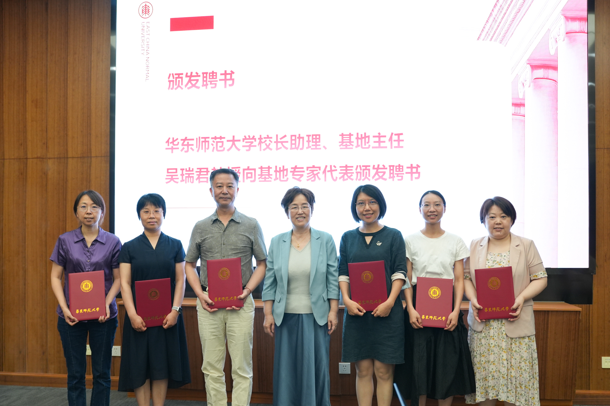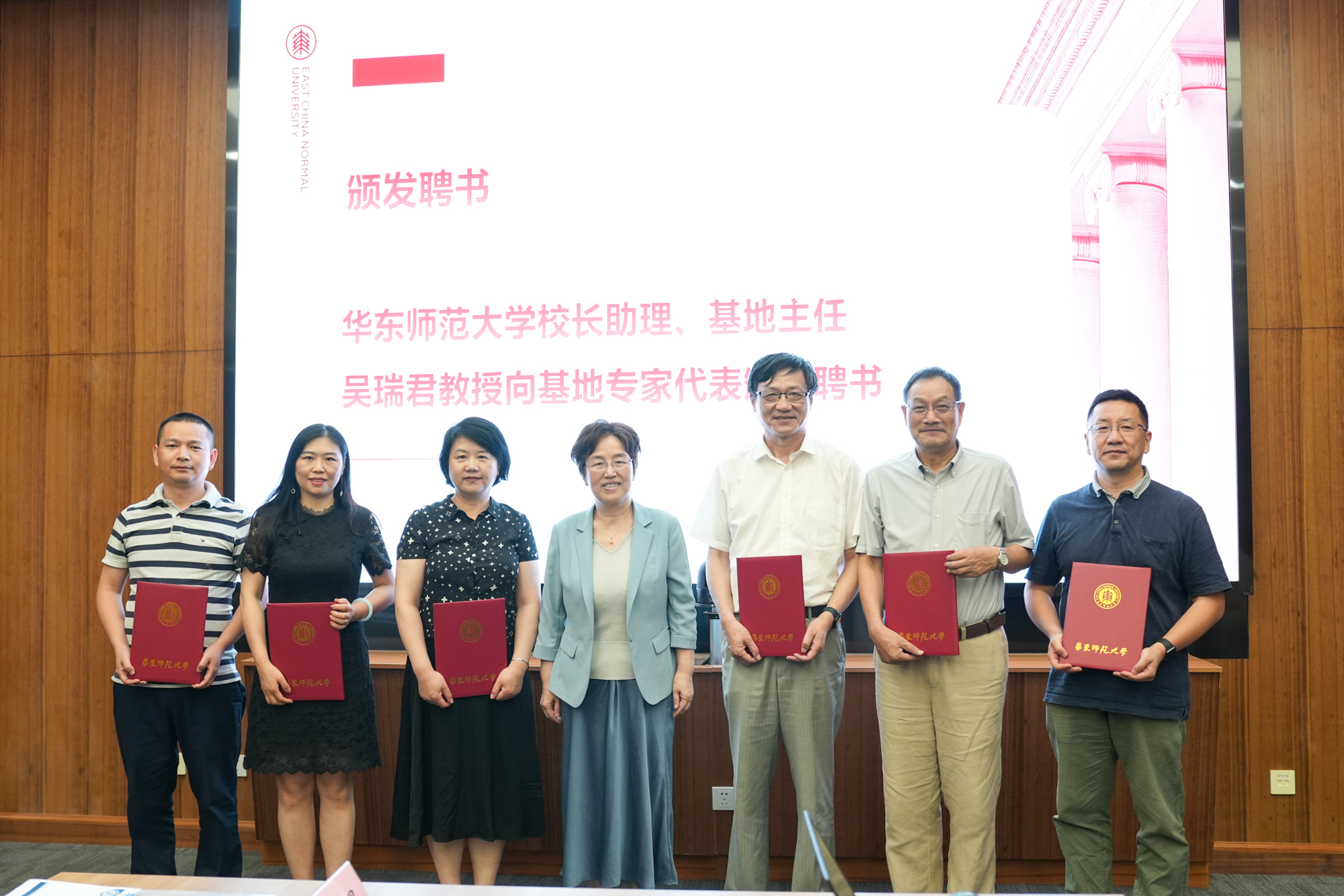 房剑森、杨昌利共同为华东师大基地揭牌。吴瑞君向基地专家代表王东、张建民、姚昱、吕新雨、路锦非、黄忠华、王子蕲、郭又新、阎德学、李梦雅、赵继娣、张美丽等颁发了聘书。