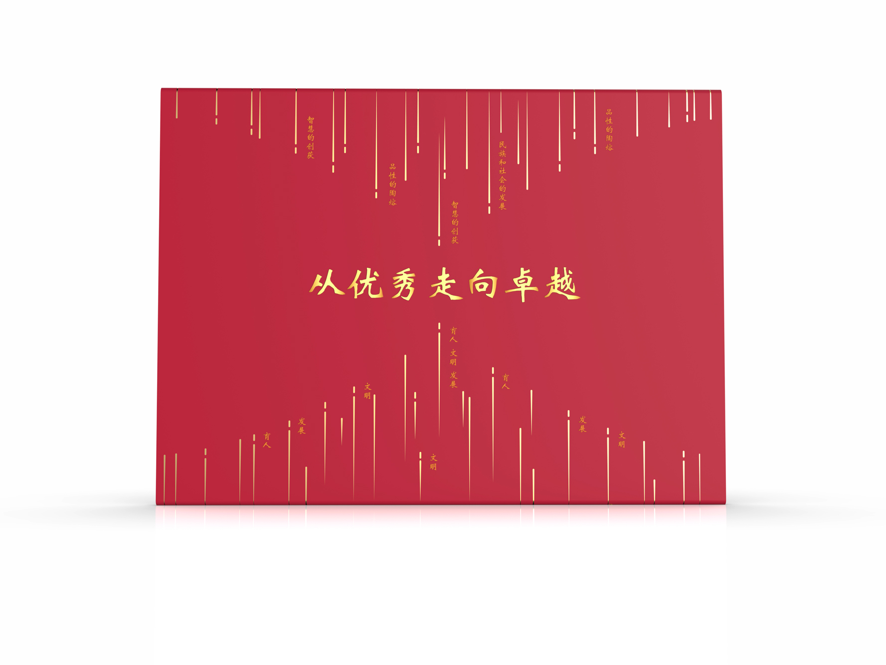 封套背面主体为“从优秀走向卓越”文字,以“超限制造”为理念,在上下两侧超快激光光束的艺术化阵列排列下,照亮了这条从优秀走向卓越的奋进之路。