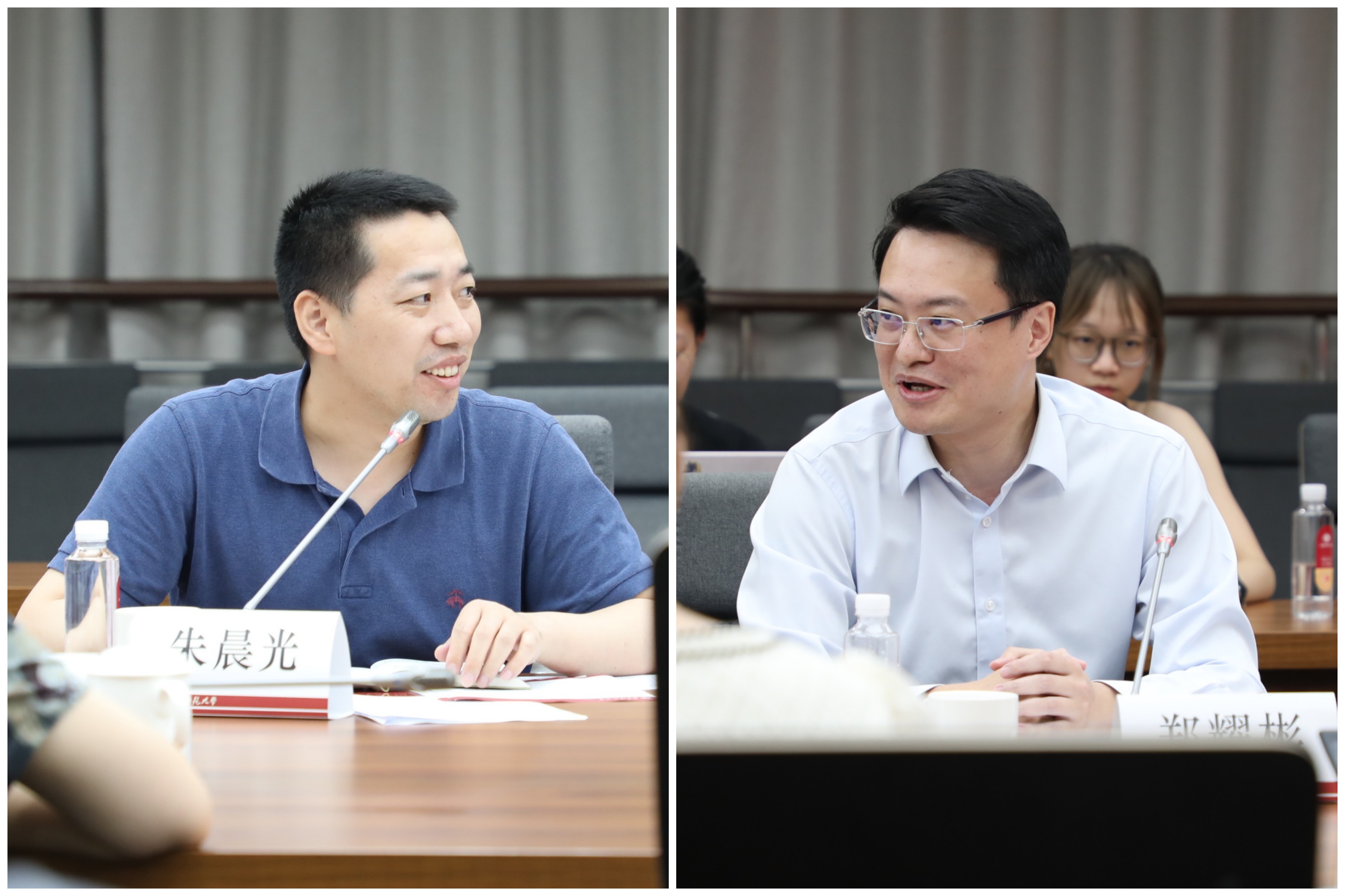 市教卫工作党委组干处副处长朱晨光、市委组织部组织二处(党建协调处)副处长郑耀彬交流发言