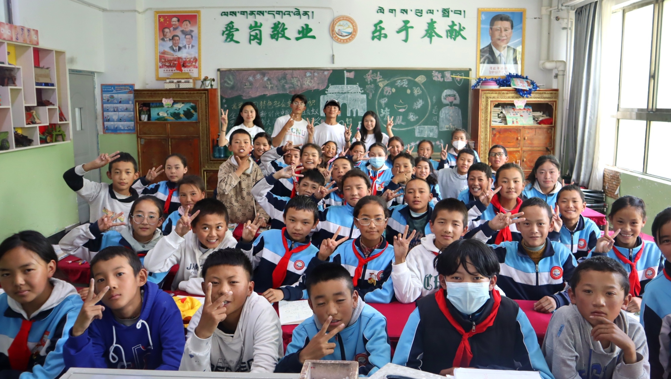 除主题班会课外,支教队员们还体验了普通话推广、藏语、数学、语文、体育、美术等不同学科的教学。同时,他们还作为助理班主任,协助班主任们完成教学任务、管理班级卫生和纪律。这是大家第一次将学校学到的教学技能和教学方法实践运用于课堂。从起初不知所措到逐渐得心应手,支教队员们真实体验到了教师这一职业的艰辛和快乐。本次支教队中的金敏,是唯一的研究生,作为第一次到西藏暑期社会实践的汉族同学,她兴奋地表示:“孩子们尤其喜欢听我们讲述山外面的世界,对到内地学校学习有着他们的向往和目标,我很欣喜,也很激动。让我感受到了在祖国的另一端,有一群孩子,在默默与我们双向奔赴。”
