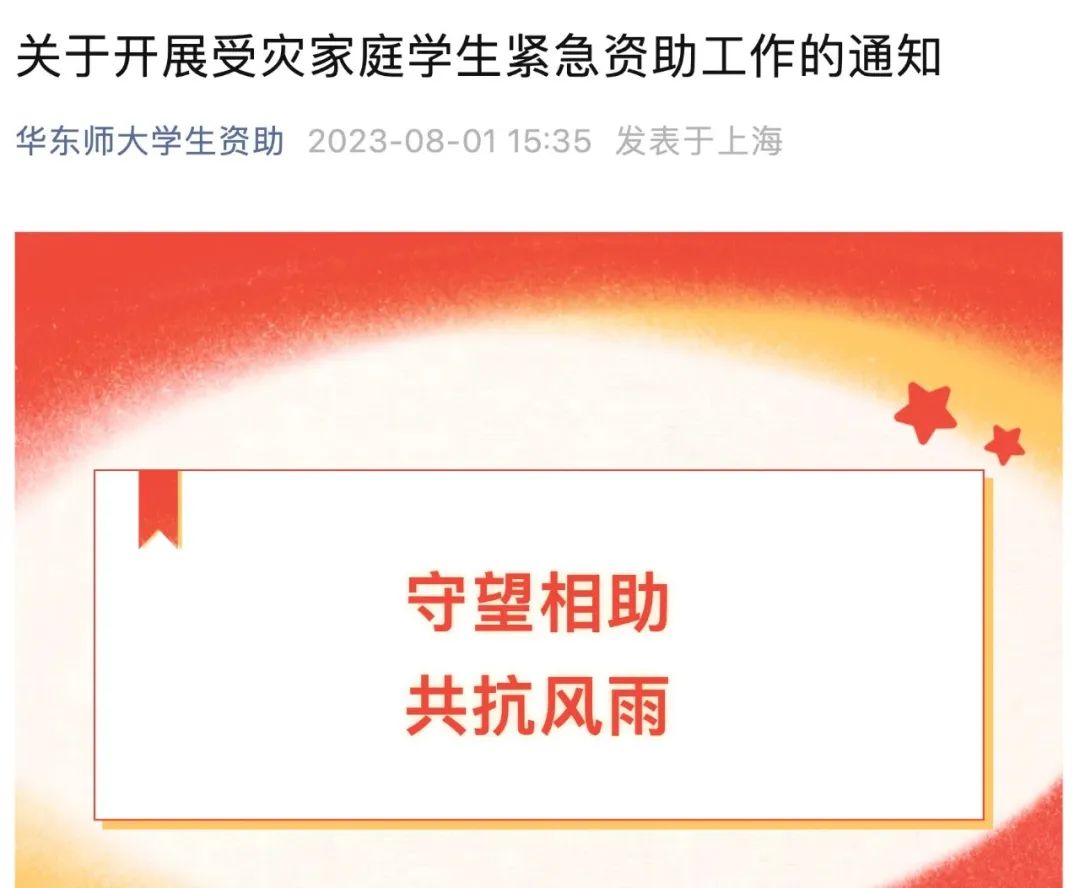 这次面向汛情受灾学生的资助属学校临时性应急保障措施。