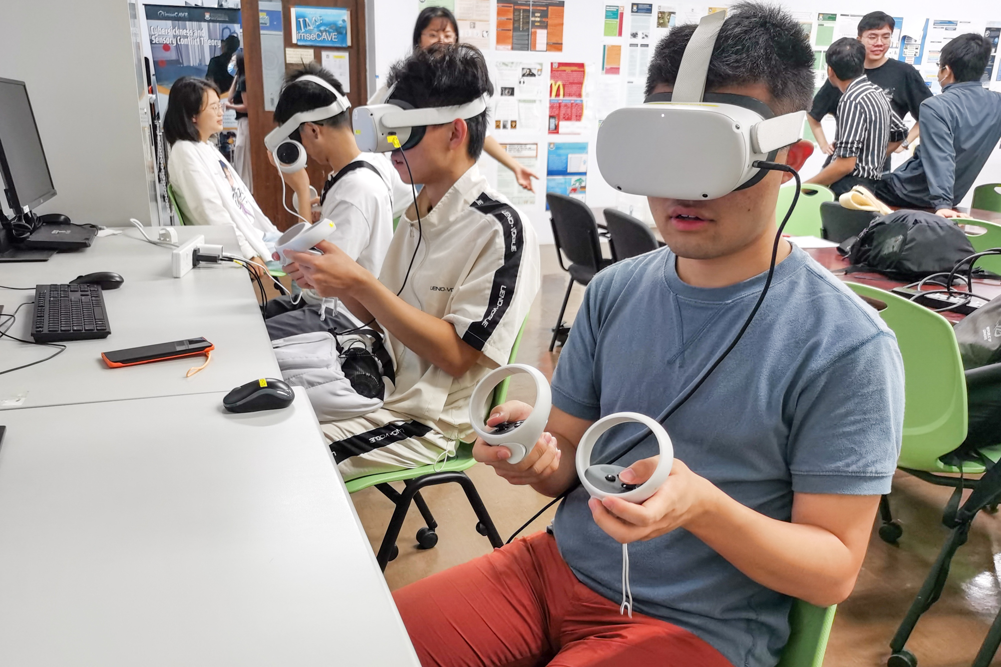 在实验室参访环节,同学们体验了香港大学VR实验室、3D打印实验室,通过沉浸式观影、游戏项目与小发明体验,大家不再囿于理论模型,切身感受到VR、3D打印等新兴技术的实际运用,开拓研究思路。
