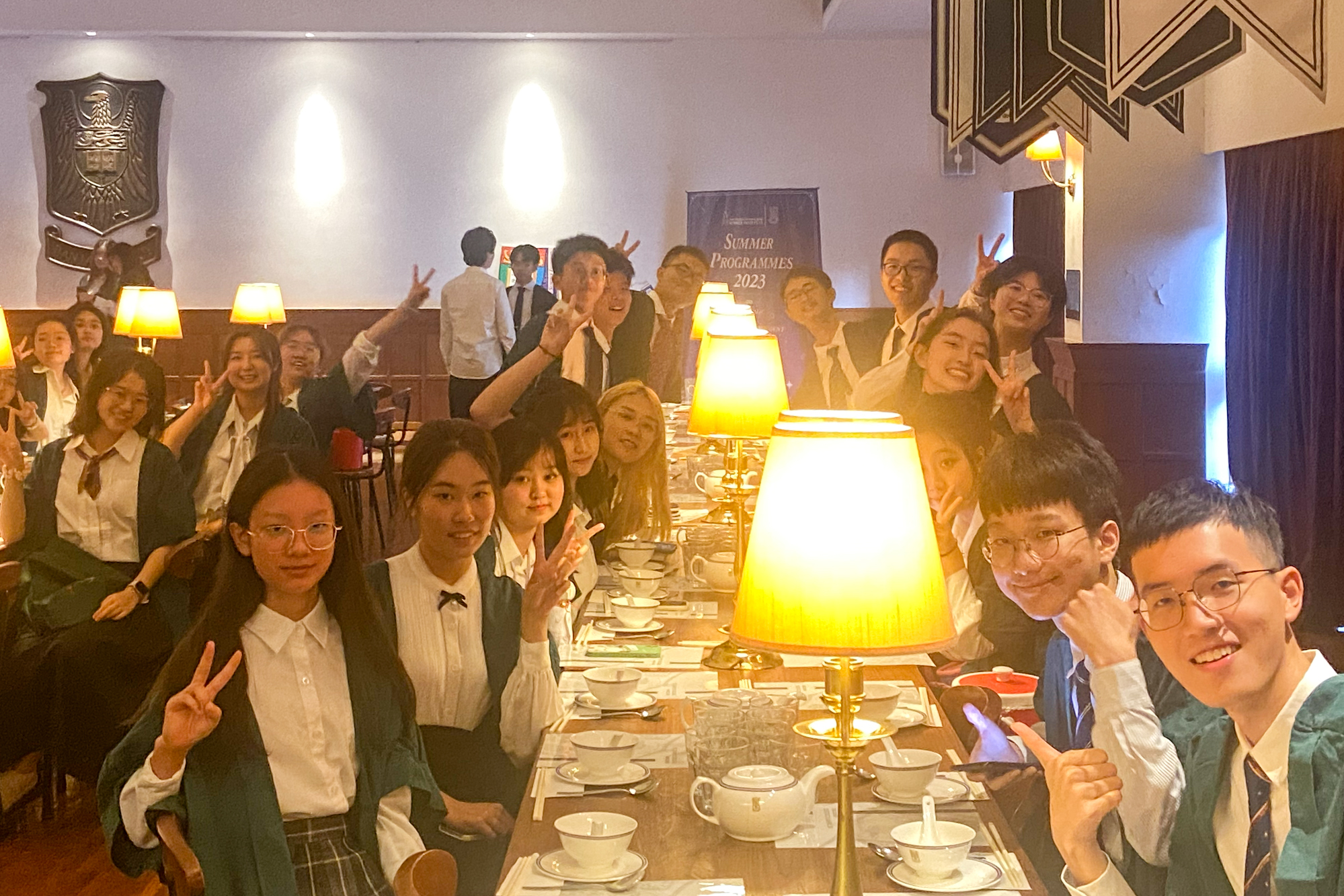 在港大独具特色的高桌晚宴上,大家换上正装,穿上港大特色绿袍,聆听专家讲述港大校史及校训精神,与来自全球各地的优秀学子面对面交流,拓展合作伙伴关系。