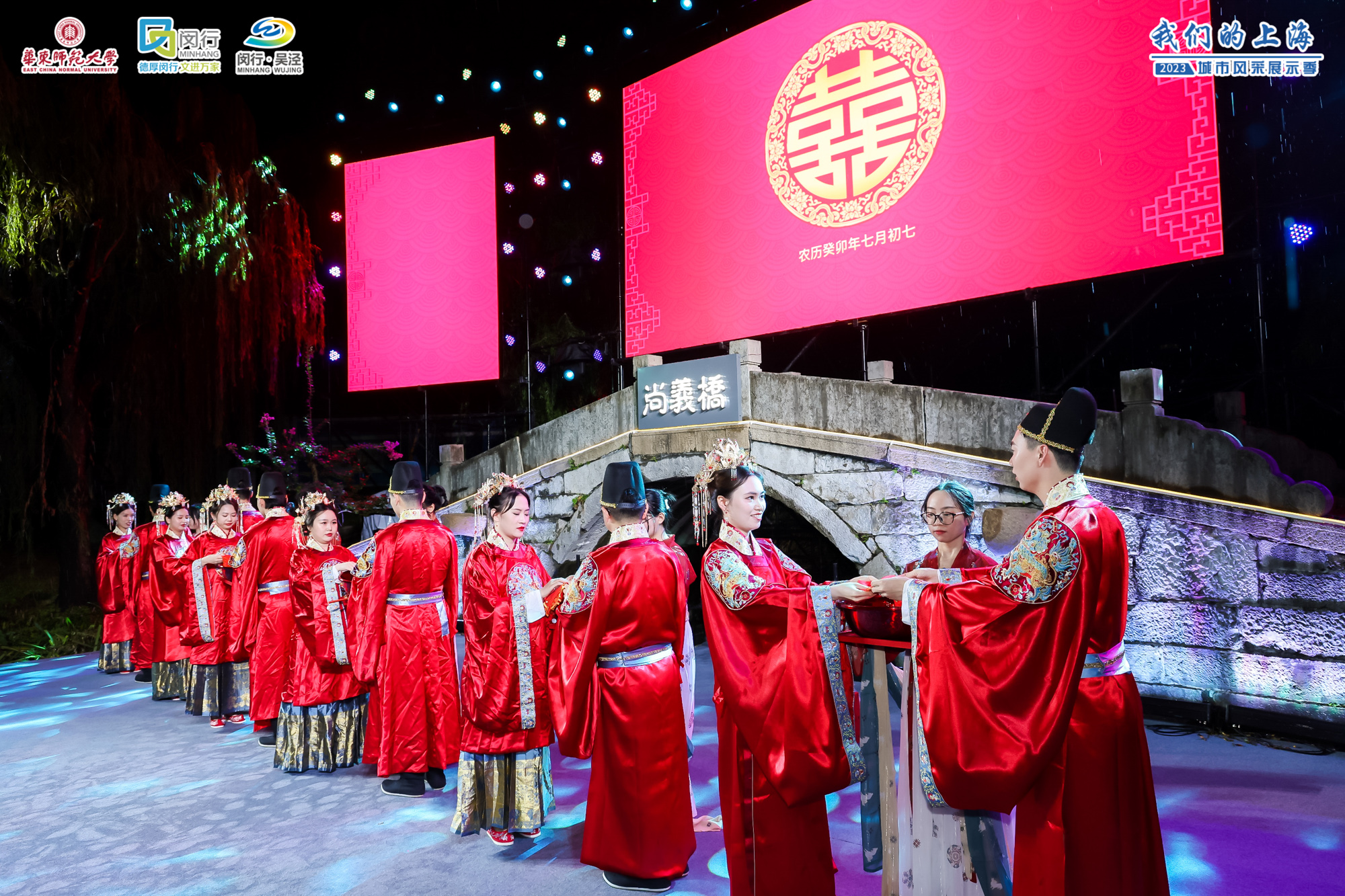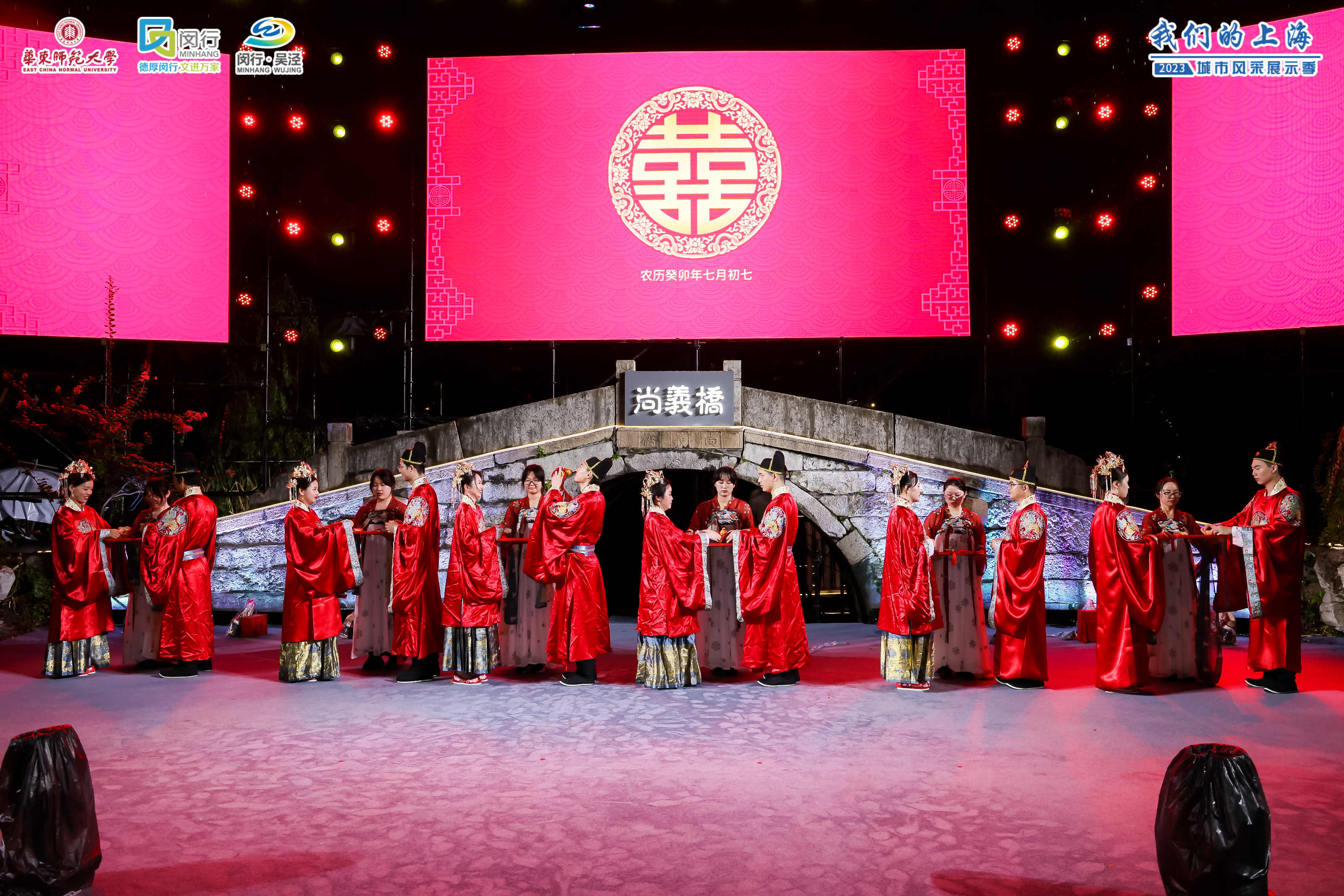 一场文明雅韵亲子讲座、一次博物馆人文行走、一个七夕传统文化市集、一场中式传统集体婚礼、一台充满古韵的文艺晚会……七夕节当日,来自华东师大的师生们和闵行吴泾镇的市民家庭一同体验了一场别开生面的七夕文化盛典。