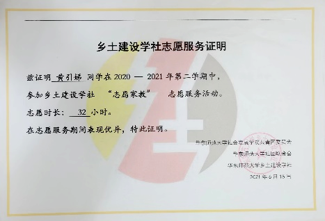 作为该实践团队宣传负责人,黄引娣个人获 “一起云支教·携手创未来”全国大学生2022暑期“返家乡”社会实践专项活动优秀先进个人、优秀志愿者的称号。