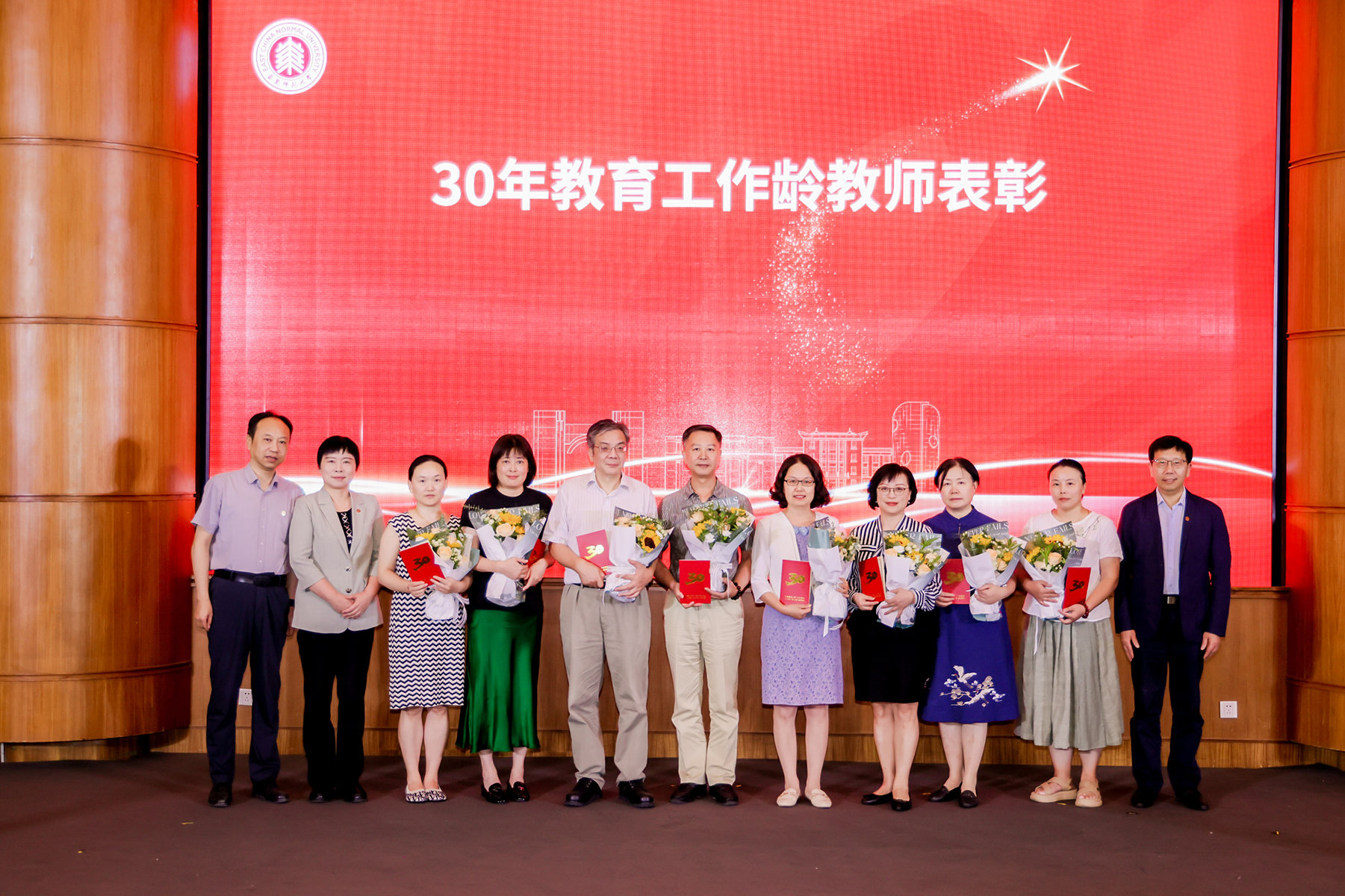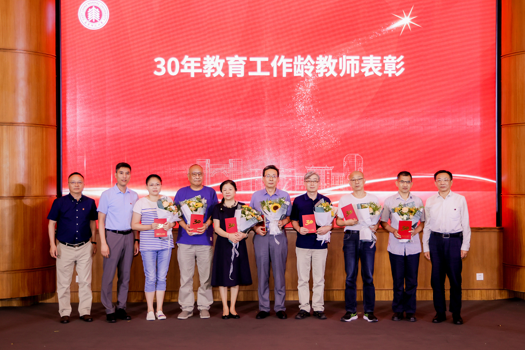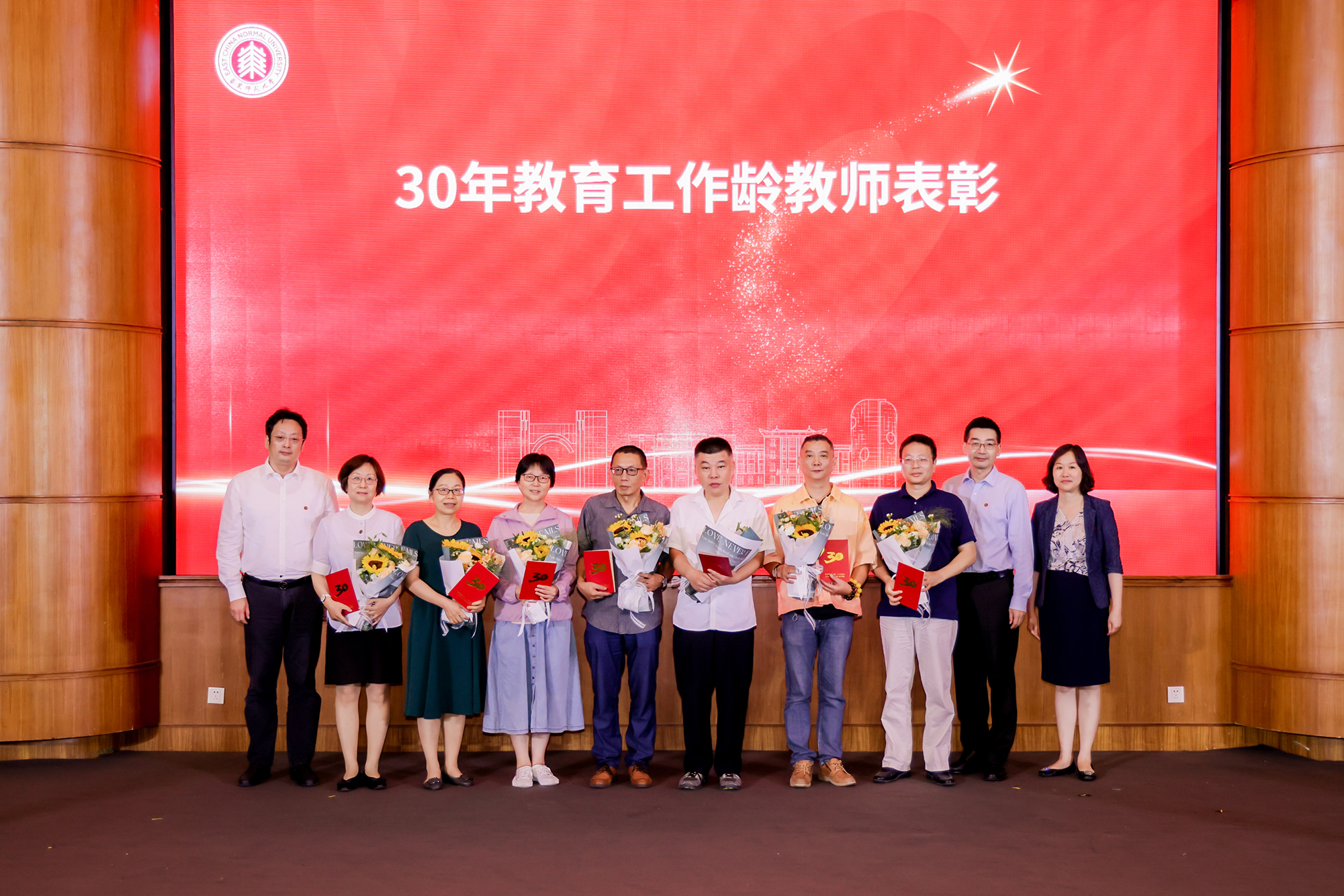 躬耕教坛求卓越,强国有我建一流。9月8日下午,华东师大隆重举办主题活动庆祝第三十九个教师节。活动现场,五位优秀教师代表分享潜心耕耘的育人故事,2024年度“教育筑梦”计划发布,72位教育工作龄满30年的教师获颁荣誉证书并收到由新入职的教师们送上的鲜花。
