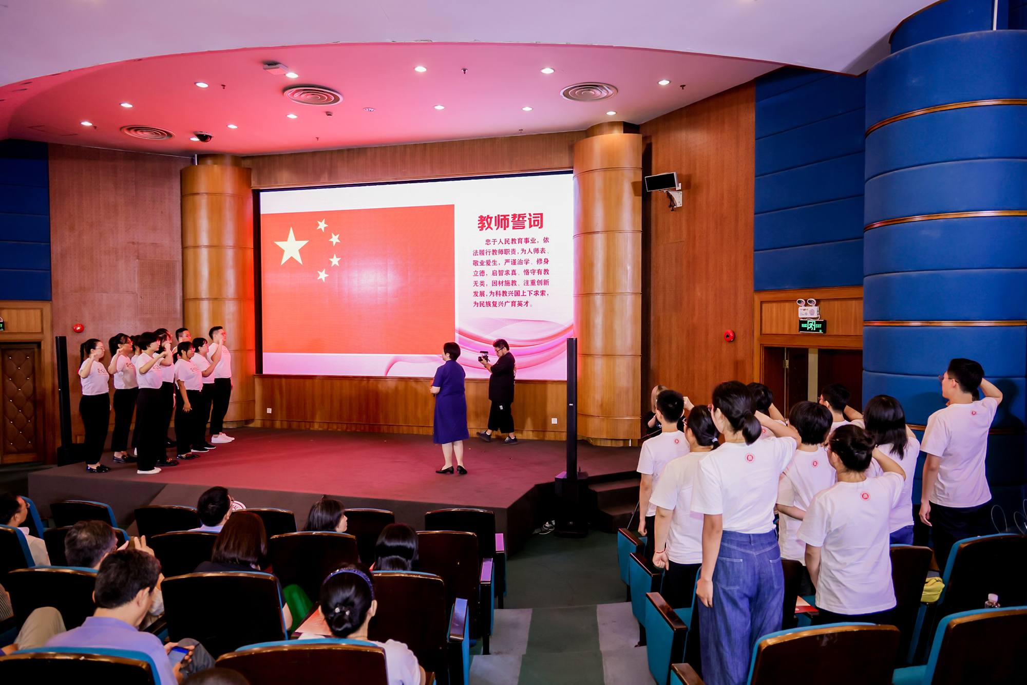 “我宣誓,忠诚人民教育事业……为科教兴国上下求索,为民族复兴广育英才。”新入职教师在现场作了庄严宣誓,立下为党育人、为国育才之志。