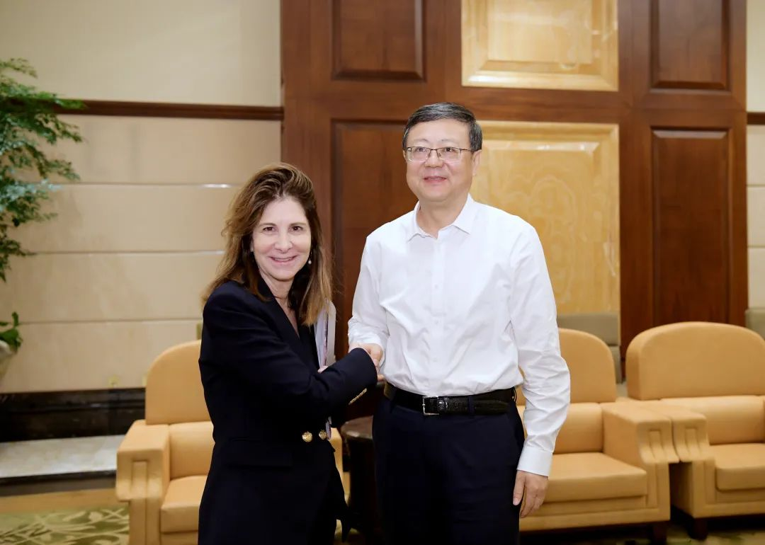 9月11日,市委书记陈吉宁会见了美国纽约大学校长琳达·米尔斯一行。