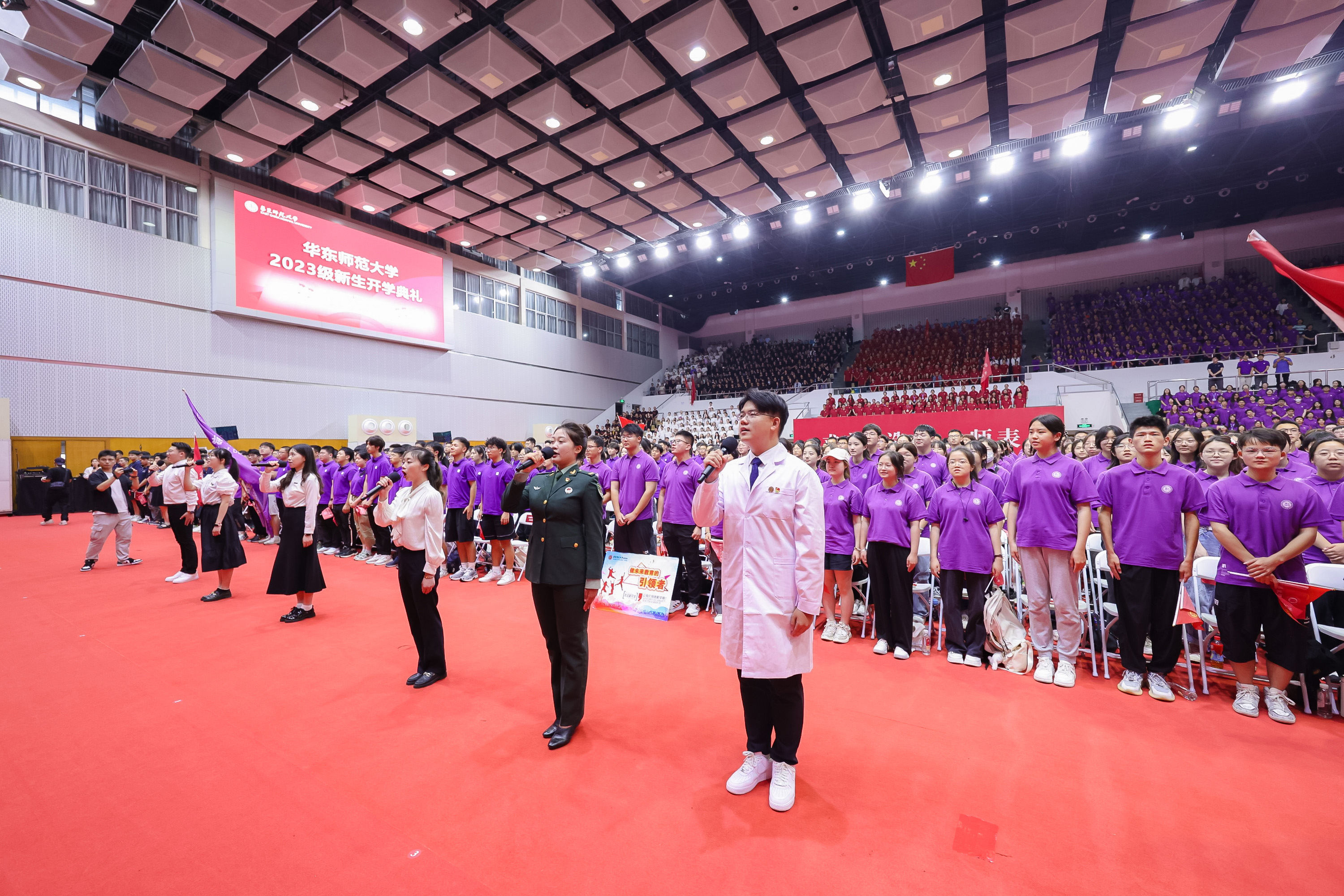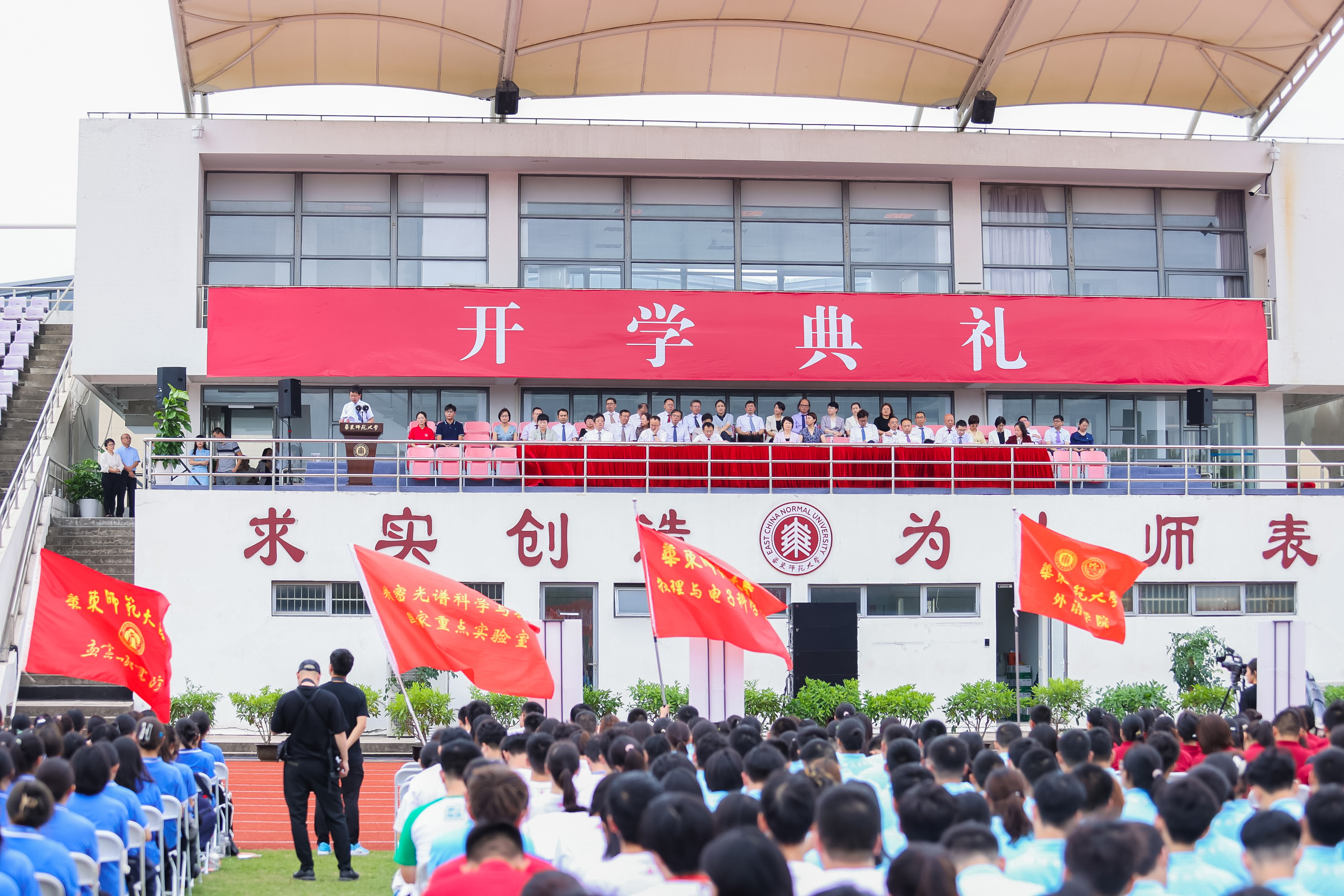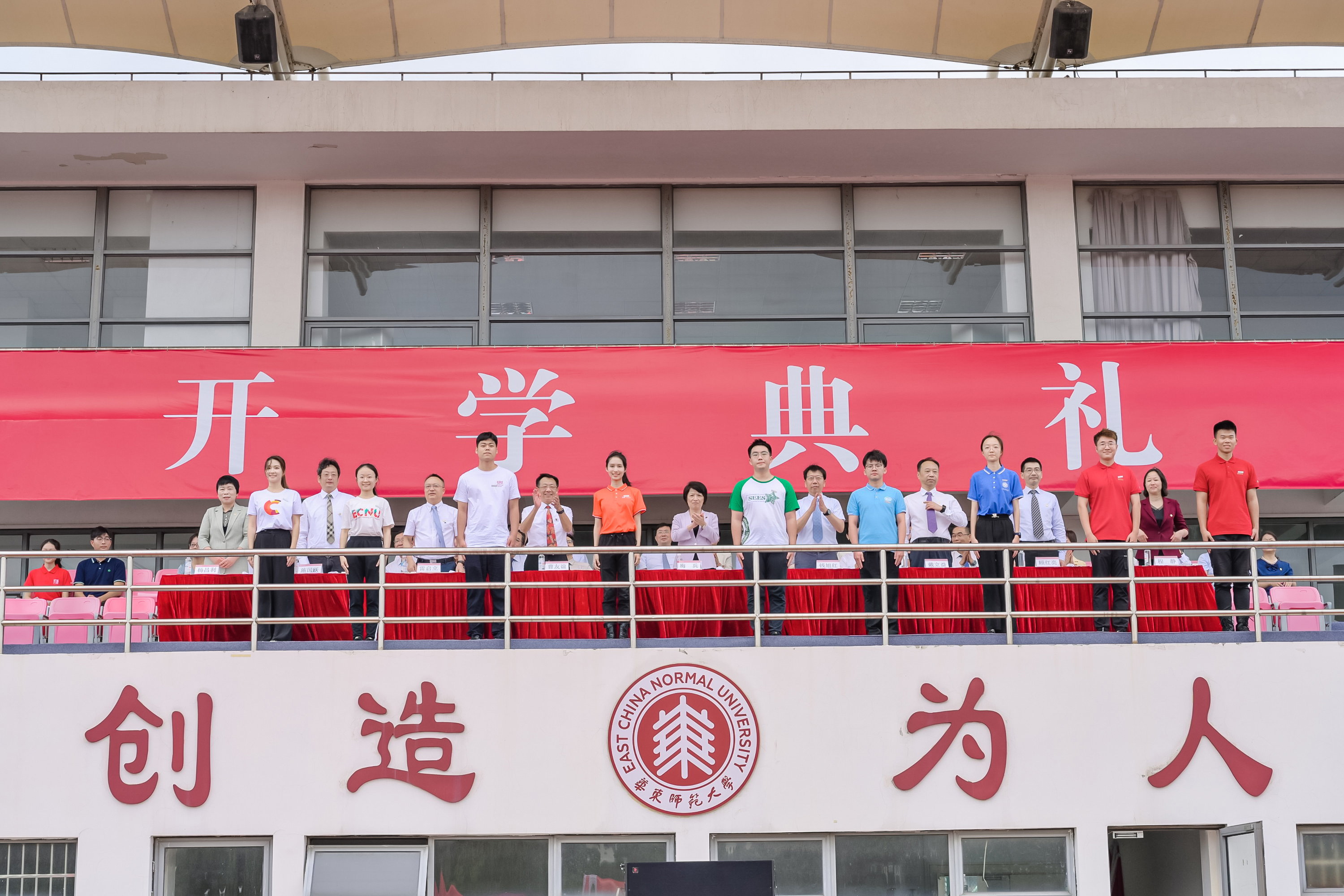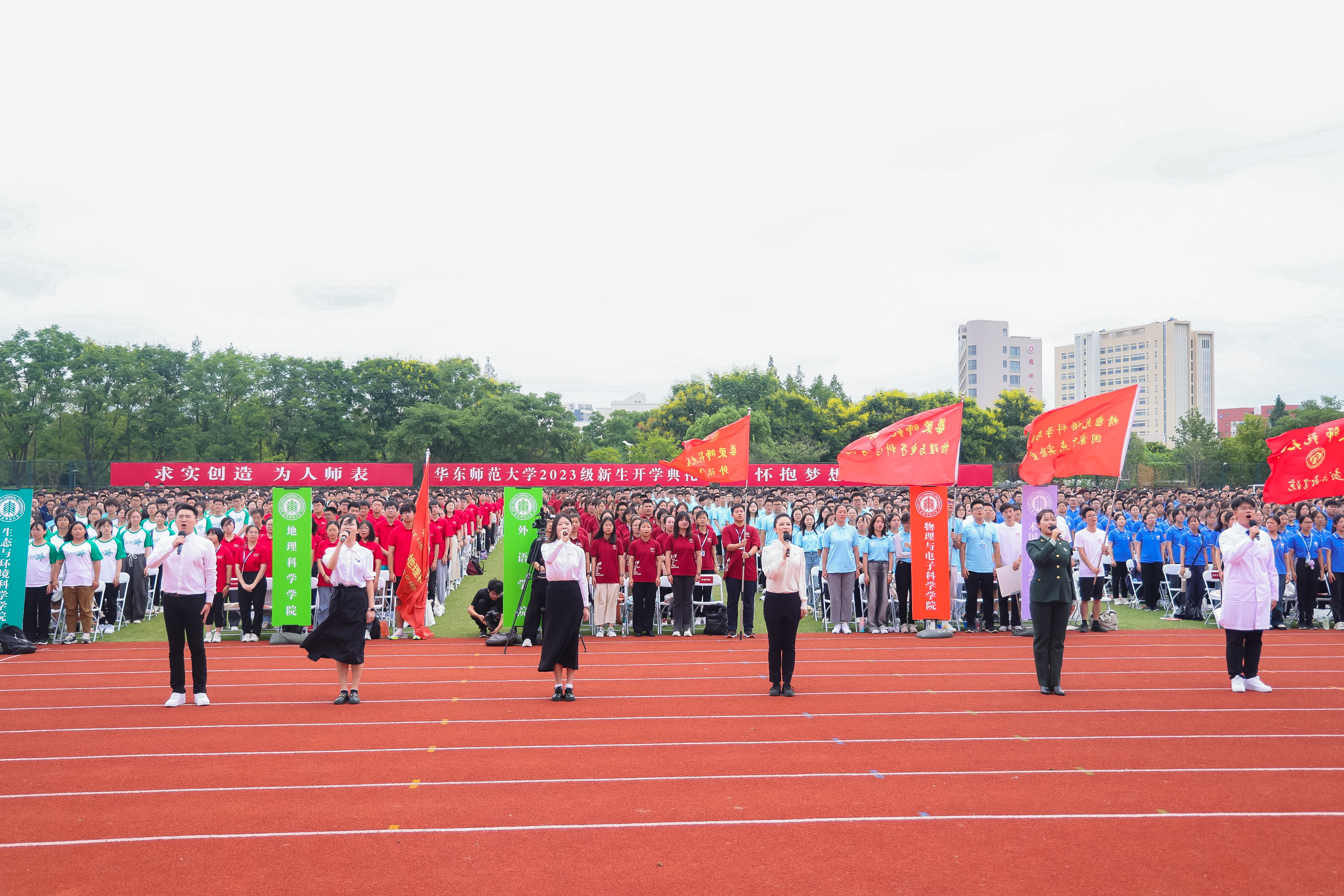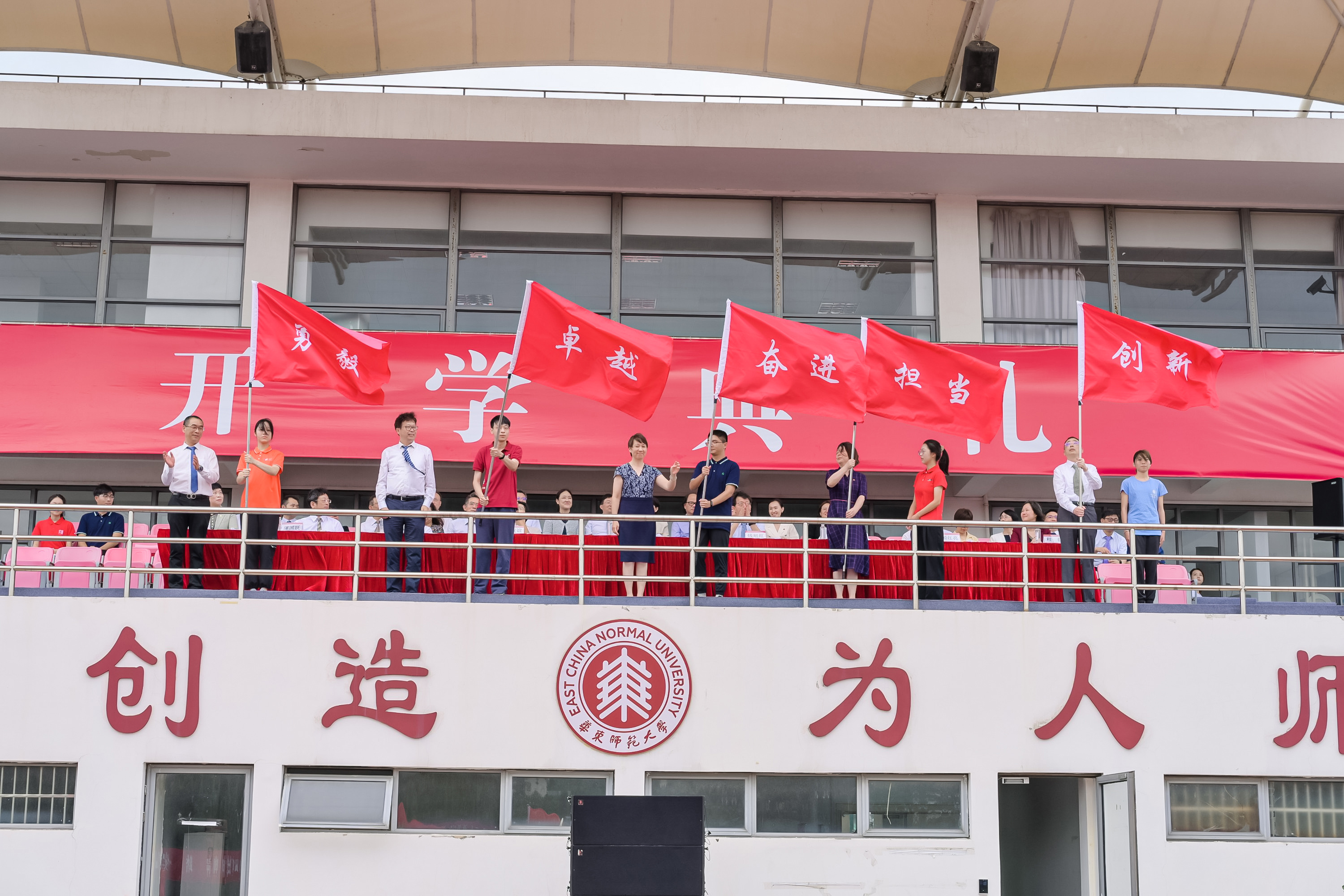 本次开学典礼上,华东师大特别邀请上海市七宝中学校长朱越,永利皇宫登录官网第一附属中学校长袁芳,上海市奉贤中学校长林春辉,永利皇宫登录官网第三附属中学校长干亚清,永利皇宫登录官网附属东昌中学校长薛志明,“上海市教育功臣”、上海中学校长冯志刚,永利皇宫登录官网第二附属中学校长周彬,上海市曹杨第二中学校长周飞,上海市进才中学校长胡杰,永利皇宫登录官网附属天山中学校长焦勤来到现场,为新生代表授予旗帜,共同见证2023级新生第一课。