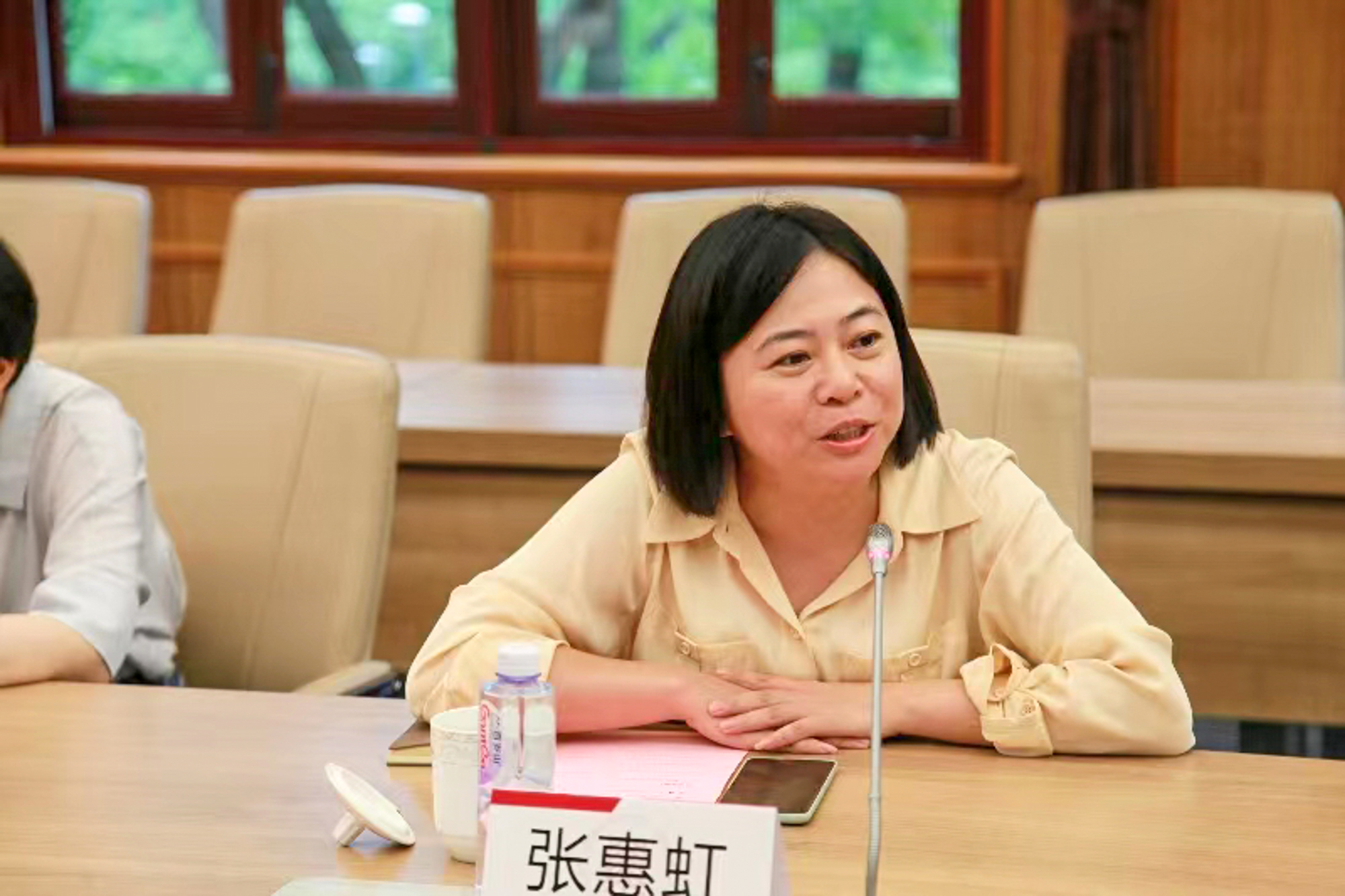学校办公室主任、党委统战部部长张惠虹发言