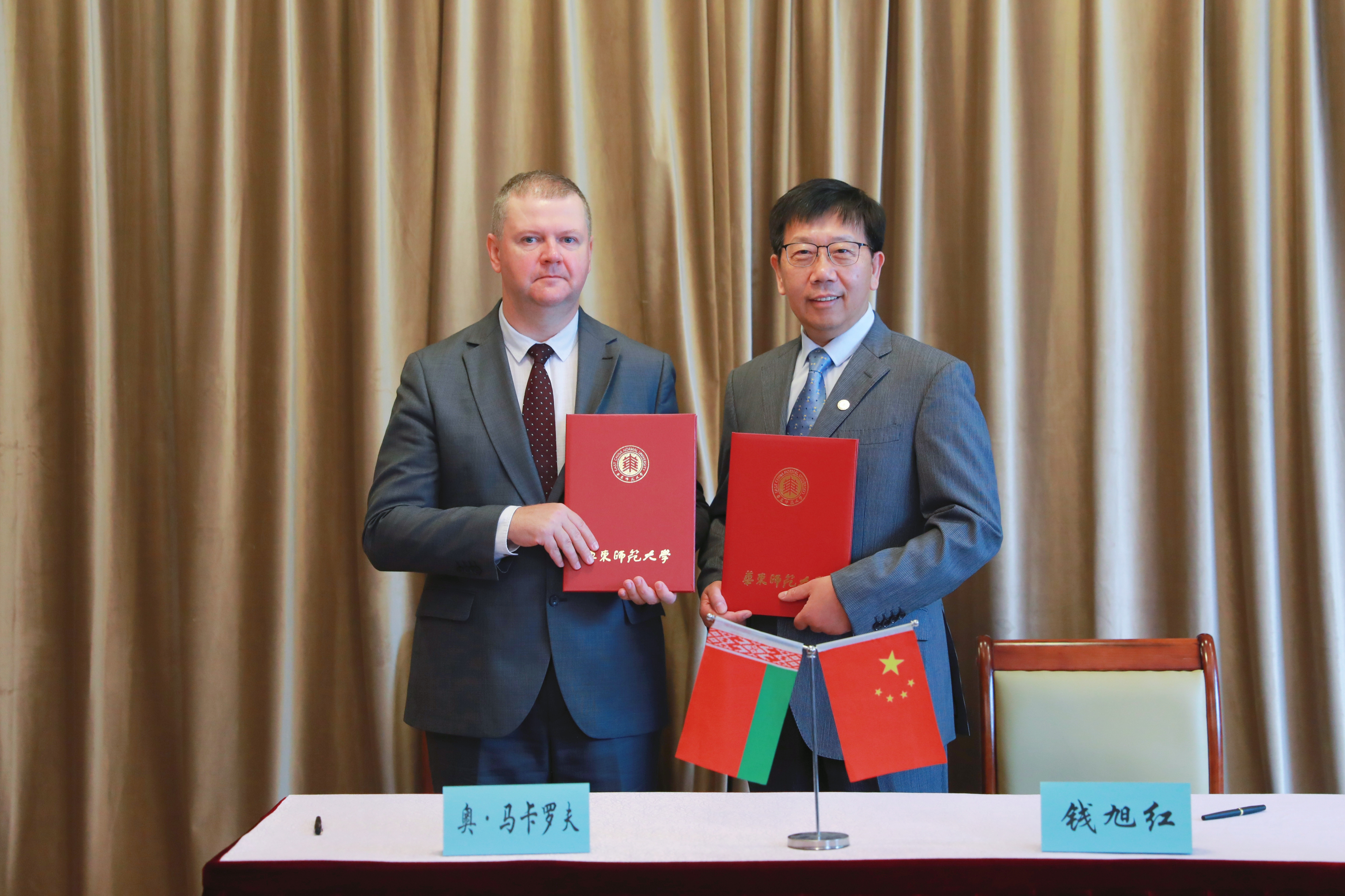 钱旭红与马卡洛夫签署华东师大与白俄罗斯战略研究所合作备忘录