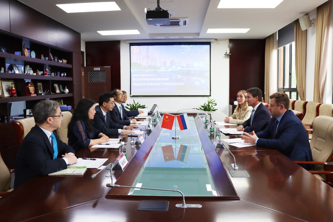 9月21日下午, 俄罗斯科学院中国与现代亚洲研究所所长巴巴耶夫·基里尔一行3人访问华东师大。华东师大副校长顾红亮会见了代表团,俄罗斯研究中心执行主任刘军、副主任贝文力,政治与国际关系学院徐广淼副教授、国际合作与交流处等相关人员陪同会见。