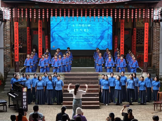 “我们的改编是为了更好地传唱女书,让非遗能够传下去、活起来……”“筑梦导师”姜蕾教授如是说道。通过近一个月的筹备、线上线下排练与实地的集训,终于让乡村孩子们登上了2023江永国际音乐周的舞台。