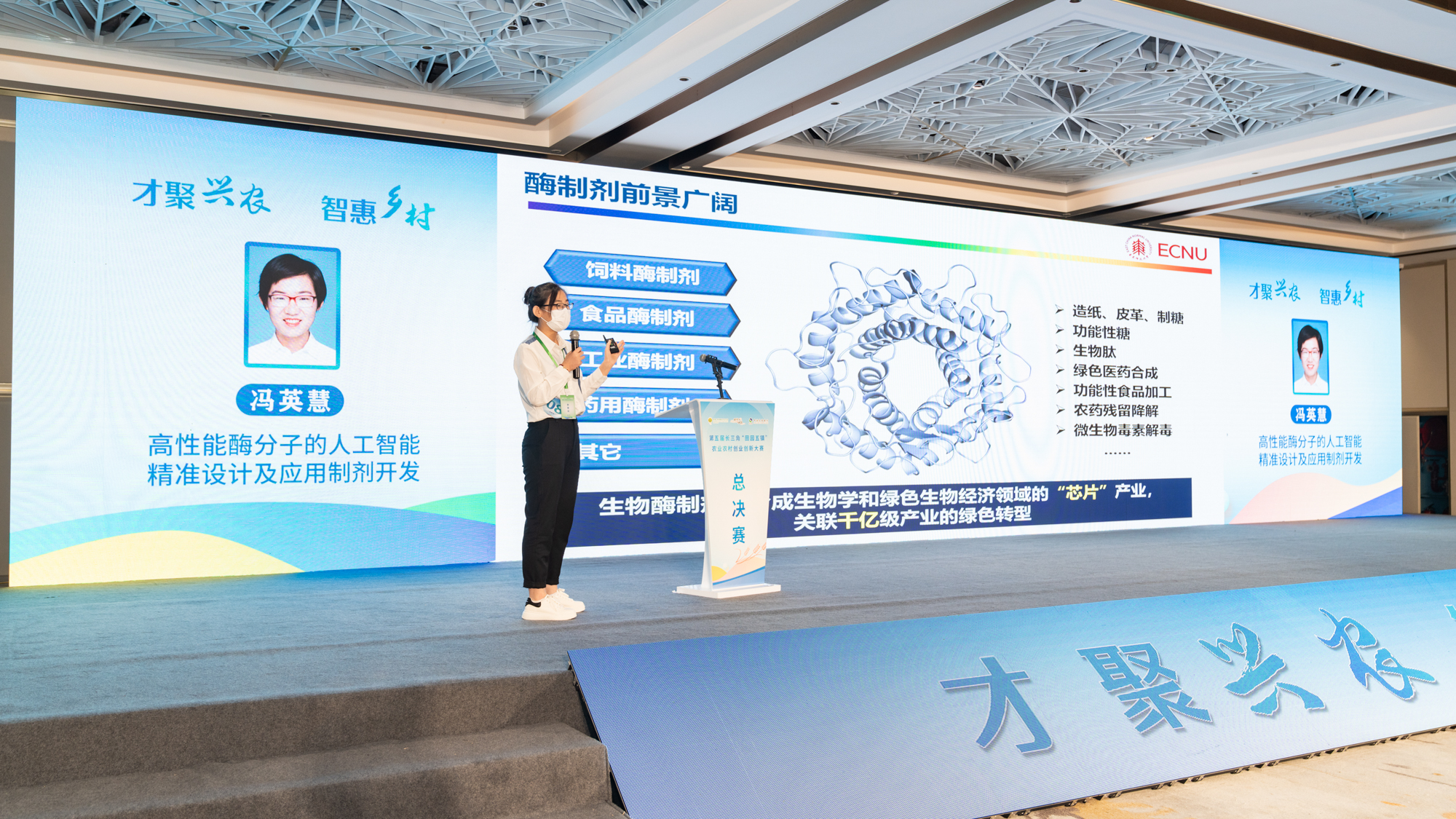 华东师大冯英慧博士的参赛项目“高性能酶分子的人工智能精准设计及应用制剂开发”斩获一等奖