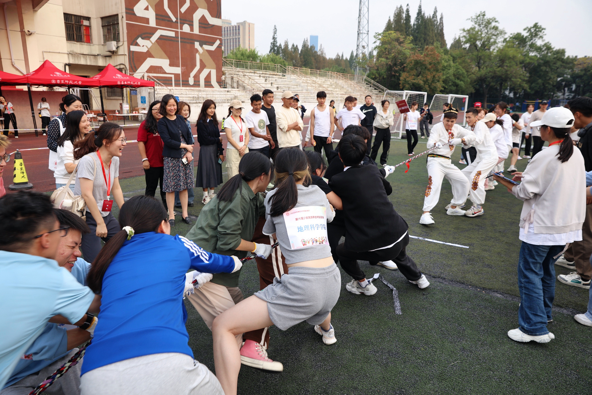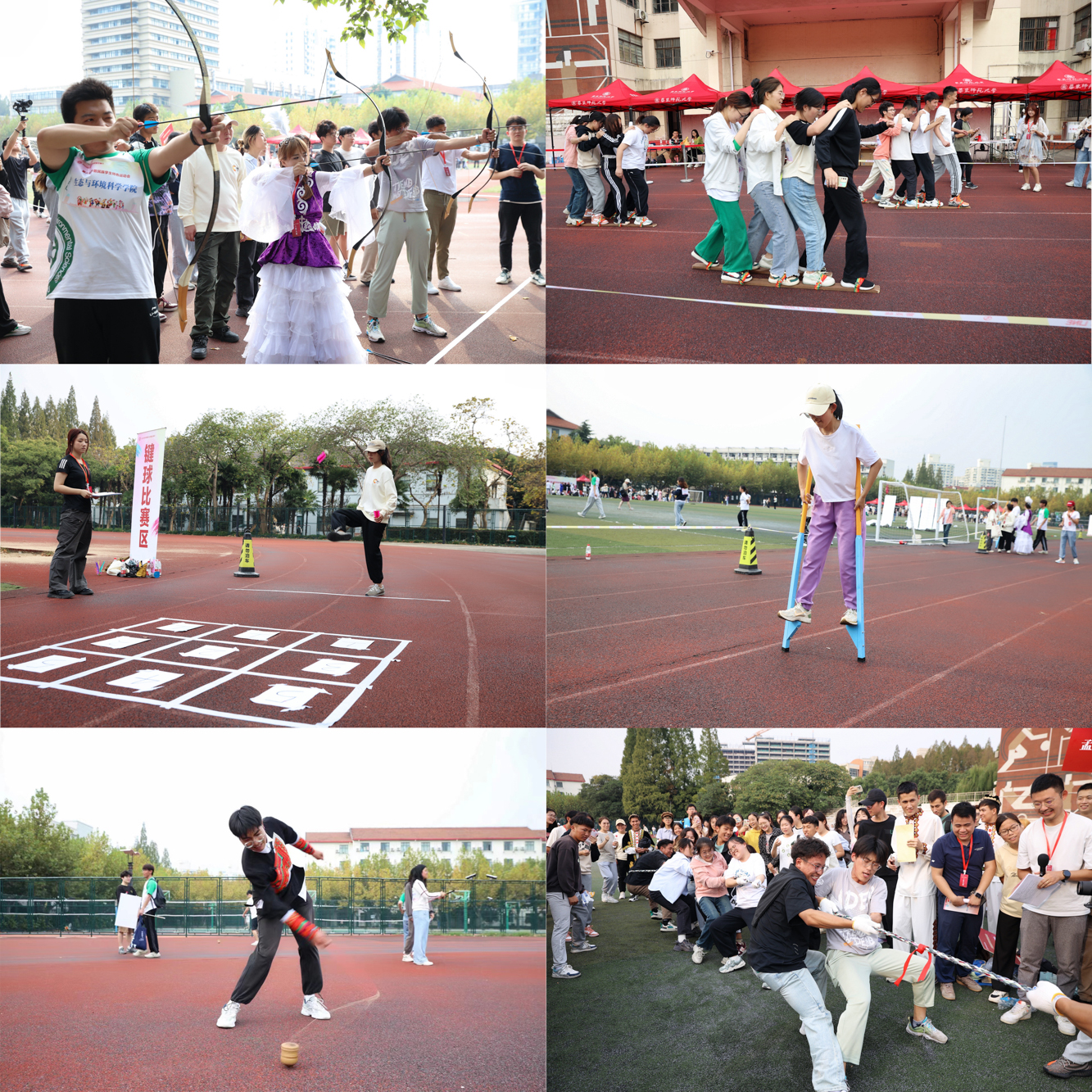 运动会分展示区、体验区、比赛区三个部分。在射箭、高跷竞速、毽球、打陀螺、拔河、木板协力竞速走的比赛中,运动员们齐心协力、奋力拼搏。赛场旁,同学们激动呐喊、加油助威,尽显华师学子团结奋进、幸福和谐的精神风貌。