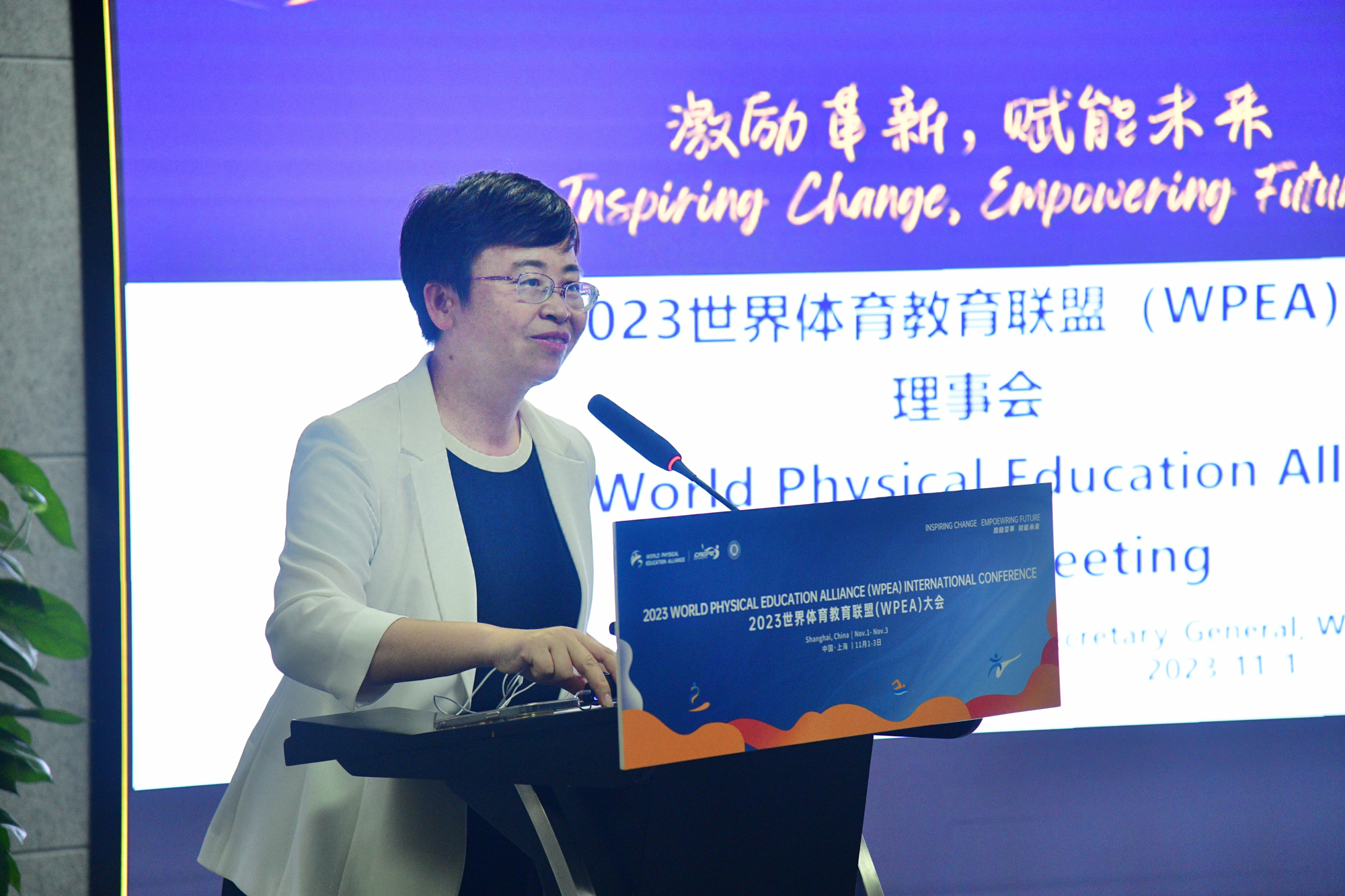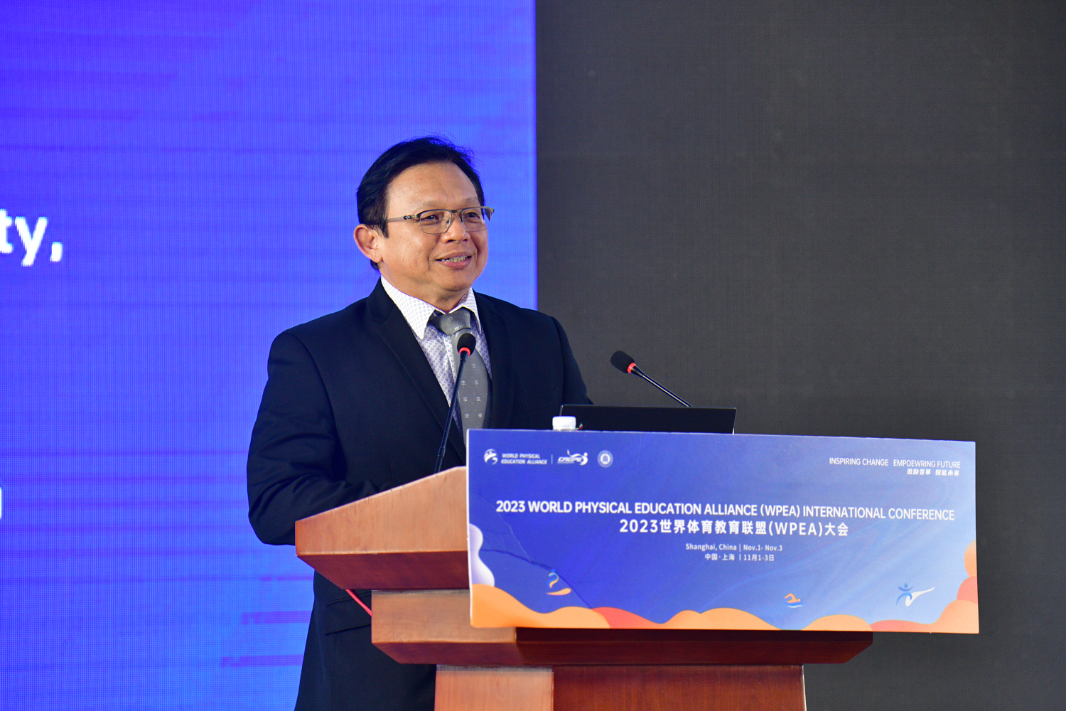 世界体育教育联盟的使命是聚力创建一个全球体育教育与健康促进的文化交流、科研分享、教学实践、专家指导、人才培养和资源共享的高质量国际合作平台,促进全球各国优势互补,互帮互助,合作共赢,通过体育教育多元化与资源一体化,促进全球各地体育与健康领域高等院校、中学、小学、幼儿园及相关健康促进机构的专家学者、体育教师、体育教育相关专业学生的交流、实践、探讨、研究和合作,推动国际体育教育高质量发展,助力儿童青少年健康成长。季浏主席在致辞中表示,在这个信息互通的时代,每个人都可以成为变革的推动者。他希望,借助此次会议继续推动 WPEA 的成长与发展,努力成为全球体育教育的倡导者,拓宽合作领域,吸引更多来自世界各地的专家学者和教育工作者,携手共进,推动世界体育教育事业向前迈进!