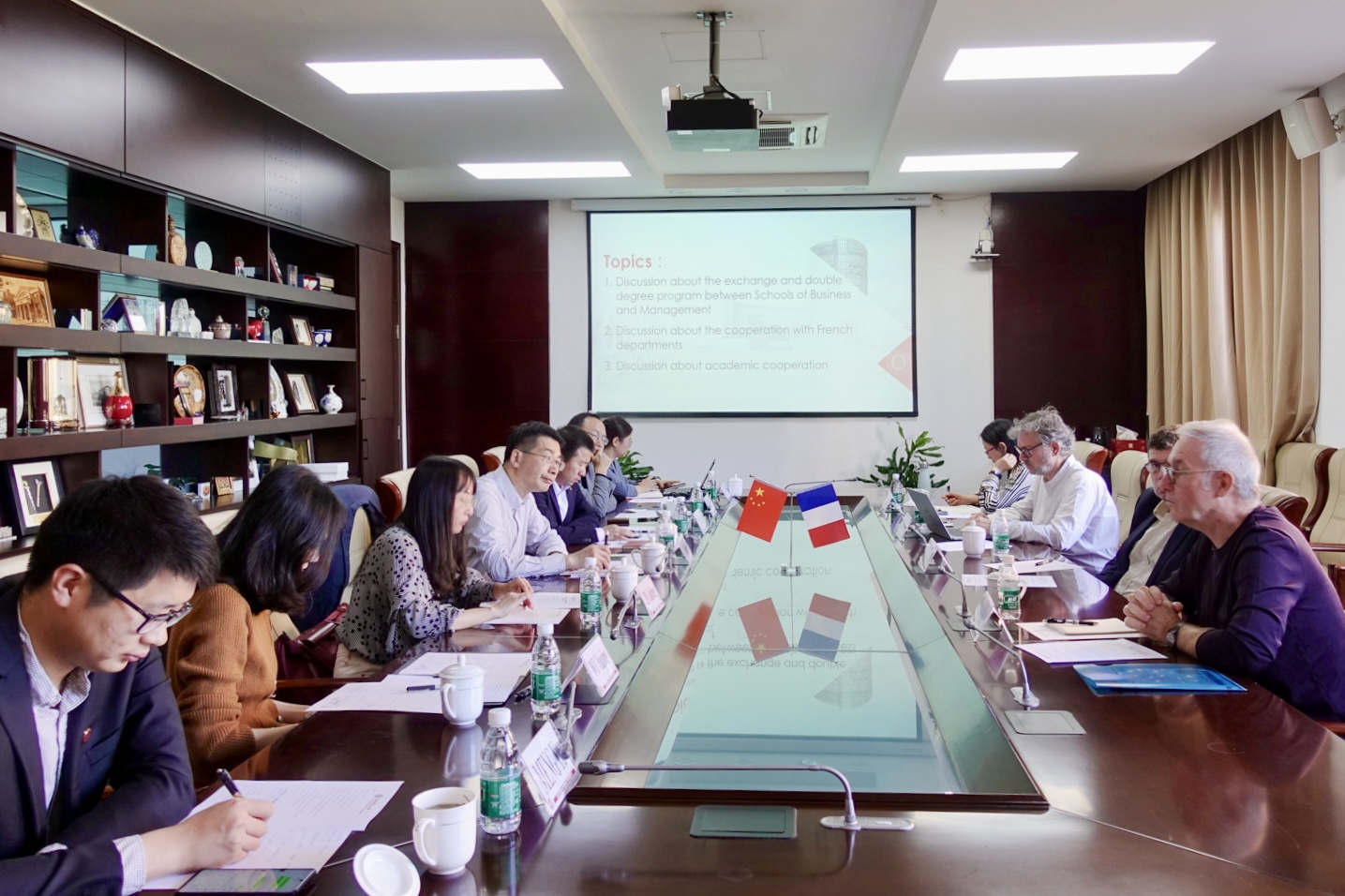 在交流讨论环节,双方代表就优化两校交换生管理服务、拓展法语言语培训、开展经管类学生联合培养以及共同设立联合科研项目的可能性等议题进行了深入探讨。