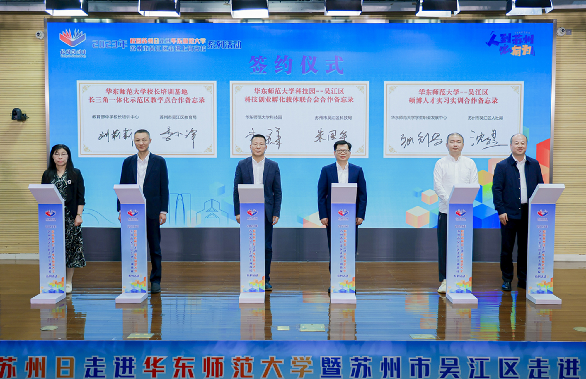 签订永利皇宫登录官网校长培训基地长三角一体化示范区教学点、永利皇宫登录官网国家大学科技园-吴江区科技创业孵化载体联合会、永利皇宫登录官网-吴江区硕博人才实习实训合作备忘录