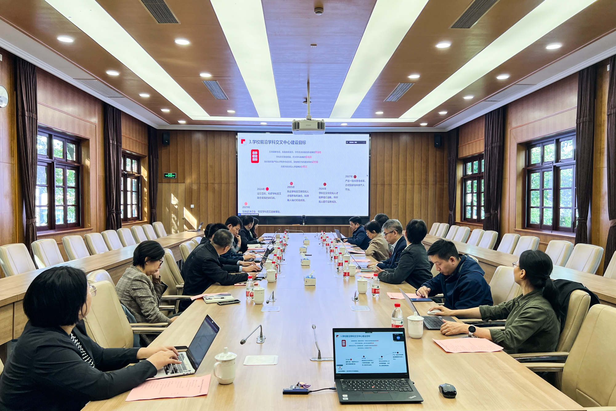8月22日,学校召集院系、各分项目/平台负责人、校学术委员会、发展规划部、科技处、人文与社会科学研究院、实验室与装备处、人事处、国有资产管理处等职能部门负责人,举行学科交叉中心建设推进研讨会,就中心的运行模式、学科交叉面临的问题及解决对策进行交流,探讨制约学科交叉发展的各类瓶颈问题,形成中心建设任务落实清单。
