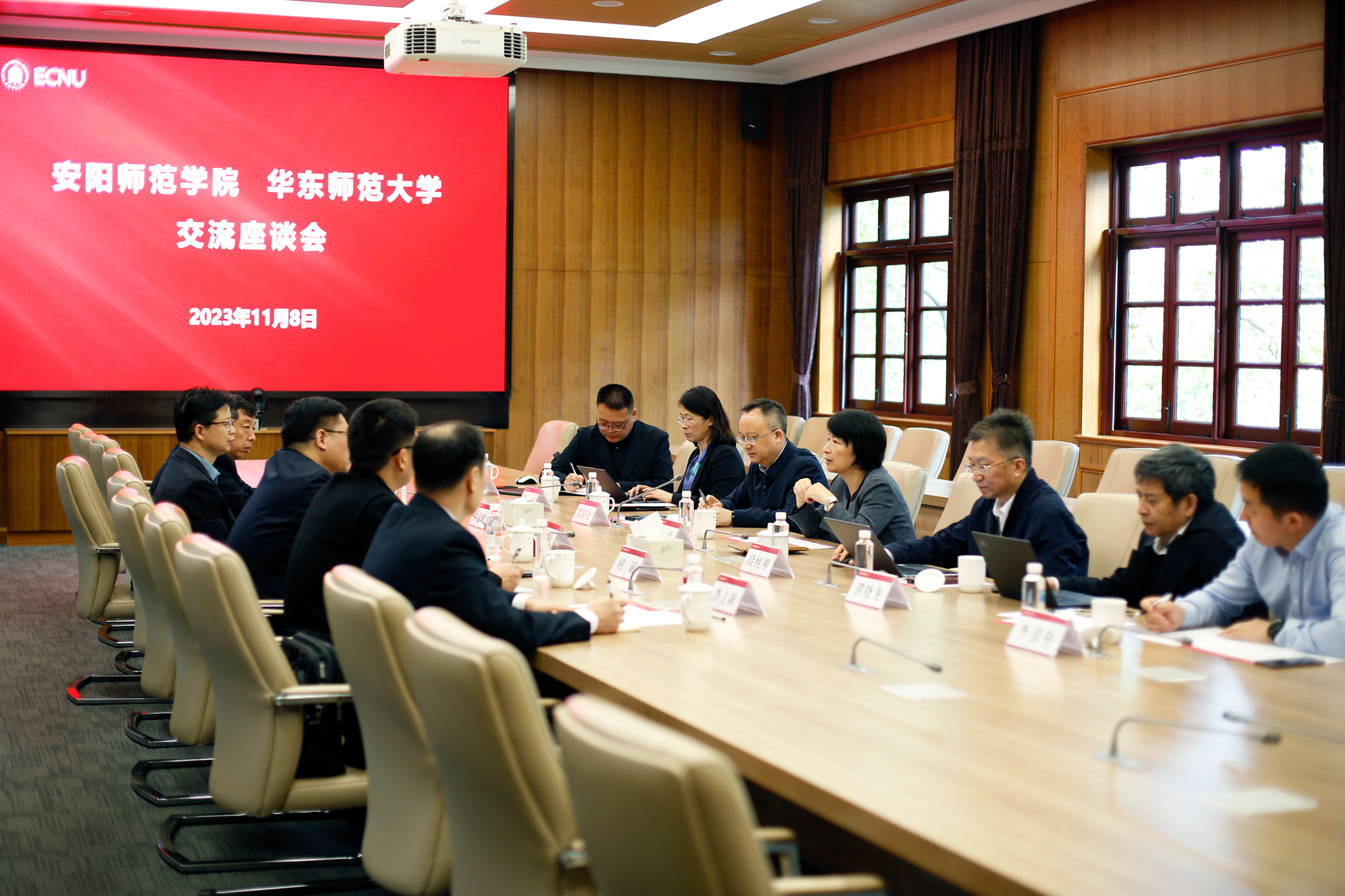 11月8日上午,安阳师范学院党委书记王全良、副校长姚远峰一行来访华东师大。华东师大党委书记梅兵与王全良一行座谈交流,党委常委、副校长雷启立主持座谈会。