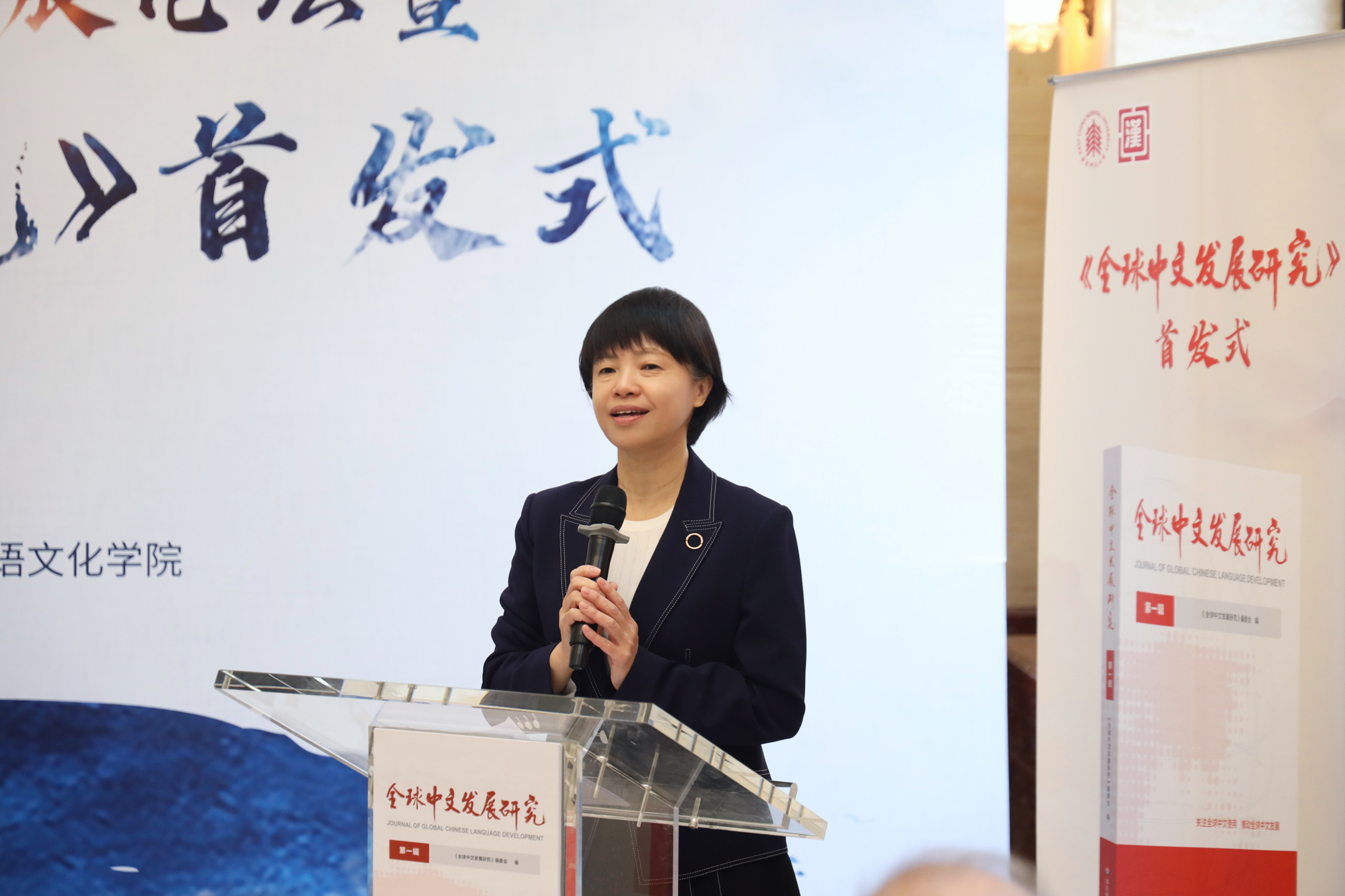 田立新在开幕致辞中表达了对全球中文发展研究中心成立一周年暨《全球中文发展研究》集刊正式发布的祝贺。她指出,中心自成立以来,开展了一系列卓有成效的工作,《全球中文发展研究》集刊的发布更是标志着中心在学术研究方面迈出了关键一步。她希望中心未来能以更高的站位持续挖掘学术研究的深度,以更宽的视野持续拓展合作交流的广度,以更大的格局持续探索成果应用的效度。充分释放综合性大学学科育人的优势,实现中心与学院基地等平台的有机互补,推动人才培养、学科建设和语言服务的贯通联动,促进中文在全球范围内高质量传播和发展,为教育强国建设作出更大贡献。