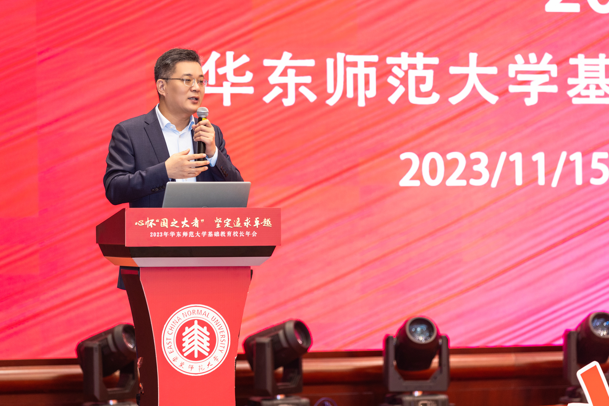 基础教育与终身教育发展部部长李志聪,通报了2023年度教育集团工作进展:学科教研联盟继续提质扩容、卓越领导力培养工程持续发力、教师招聘助力高质量办学起步、教师研修锻造卓越师资团队、“青史杯”品牌赛事形成“以史育人”新模式、“华师启航”冬夏令营探索拔尖人才一体化培养等等,以详尽的数据、丰富的活动内容,重点围绕构建基础教育卓越育人共同体,介绍了教育集团在推动集团校内涵发展方面提供的专业支撑,并再次号召集团校要加强联系、发挥主动、积极参与教育集团组织的各类活动,形成更大合力,取得更大进步,凸显办学特色。