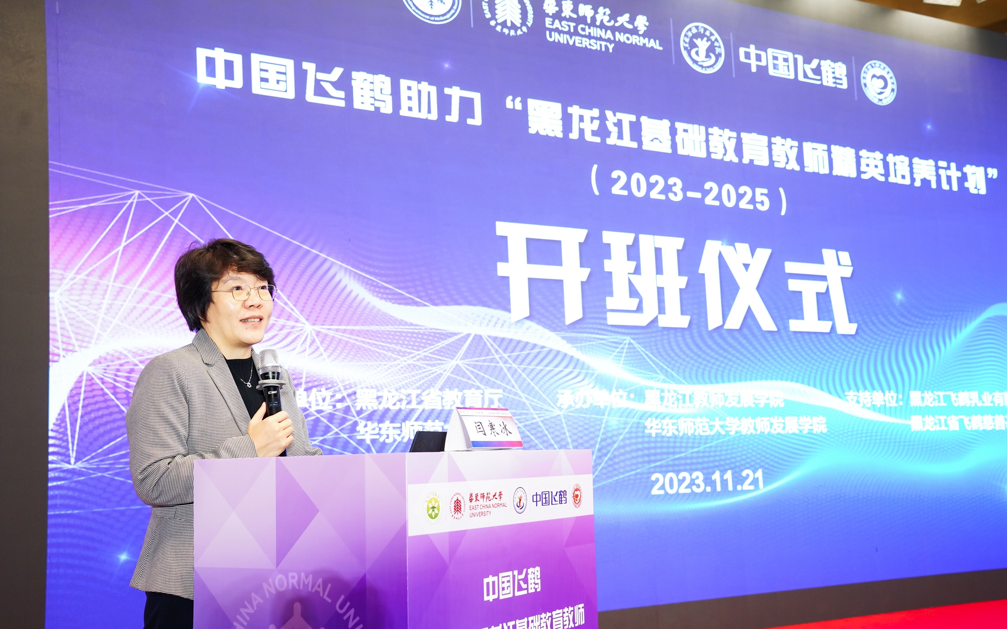 此次培训由黑龙江省教育厅和华东师大共同主办,黑龙江飞鹤乳业有限公司和黑龙江省飞鹤慈善基金会公益资助支持,黑龙江教师发展学院和华东师大教师发展学院共同承办。开班仪式在华东师大科学会堂举办,并通过在线形式面向社会直播。