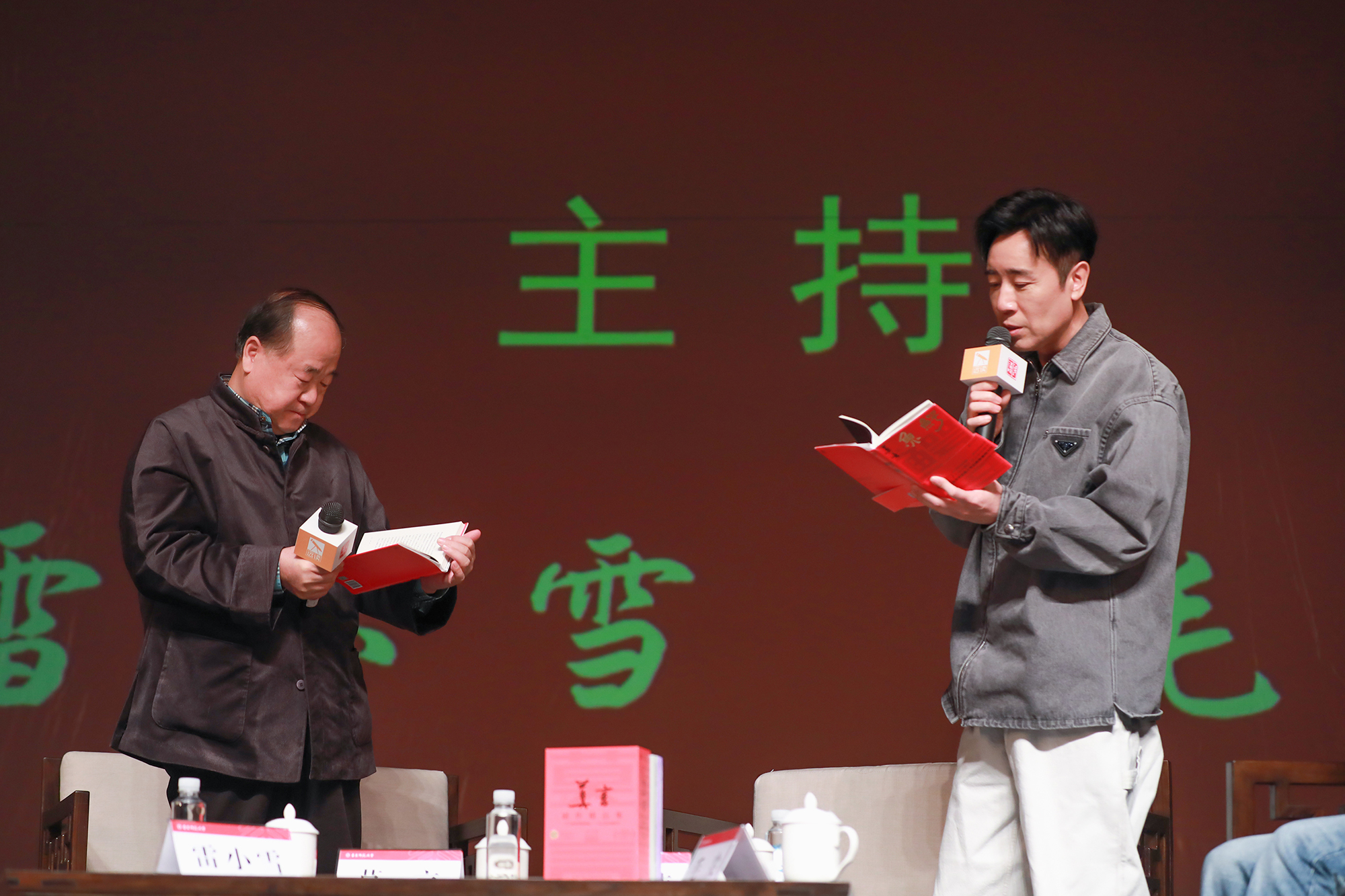 对谈由上海电视台融媒体中心首席主持人雷小雪与国际汉语文化学院教授毛尖共同主持。于和伟与莫言深情共读《鳄鱼》剧本,生动复现了“市长”与“鳄鱼”的对话。