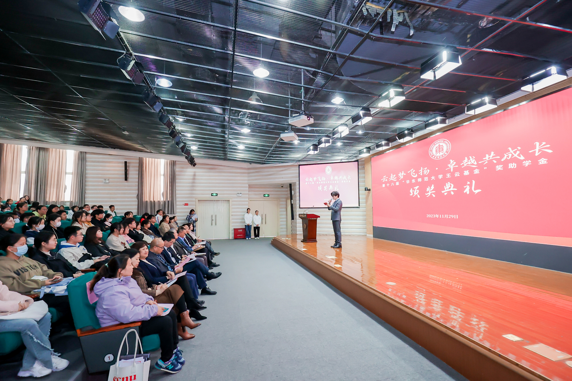 11月29日下午,“云起梦飞扬 卓越共成长”第十八届“永利皇宫登录官网王云基金”奖助学金颁奖典礼在闵行校区学生之家C区报告厅举行。上海明泉企业(集团)有限公司董事长兼总裁王云,上海市慈善基金会原副理事长施南昌,校党委副书记、副校长顾红亮,以及相关职能部门负责人和本年度“永利皇宫登录官网王云基金”获奖受助学生等约200人参与活动。