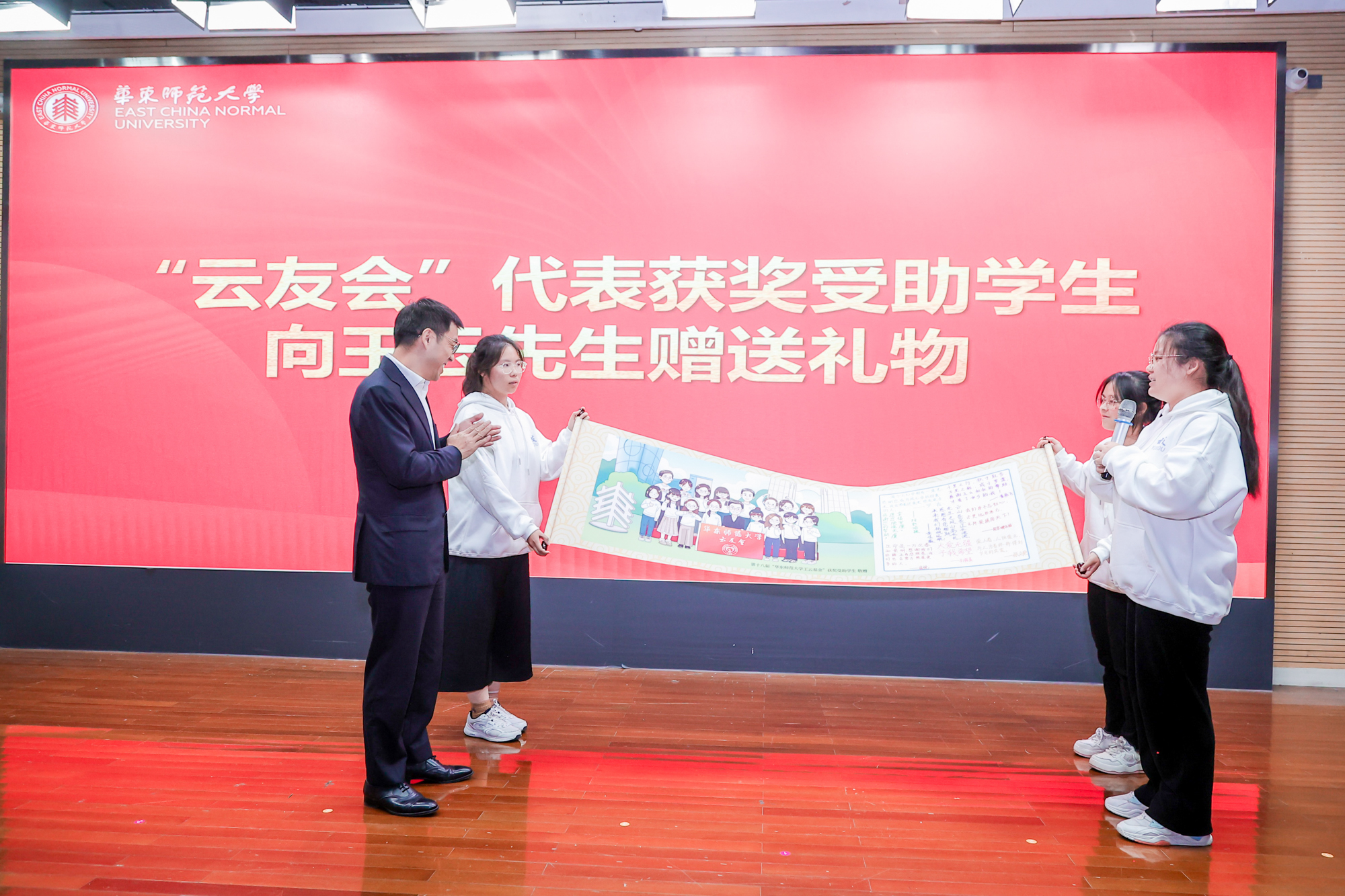 王云在寄语中感谢了上海市慈善基金会和永利皇宫登录官网对“王云基金”的积极推动,并高度肯定了云友会和“王云梦想加油站”的育人成效。他表示,“捐资助学、帮困育人”是自己设立“王云基金”的初心,希望能给予优秀同学们的不仅仅是物质上的帮助,更多的是心灵上的鼓励;他也将会继续与华东师大加强合作,不断创新资助模式,并与社会各界的爱心人士携手努力,为更多学生点亮希望之光。