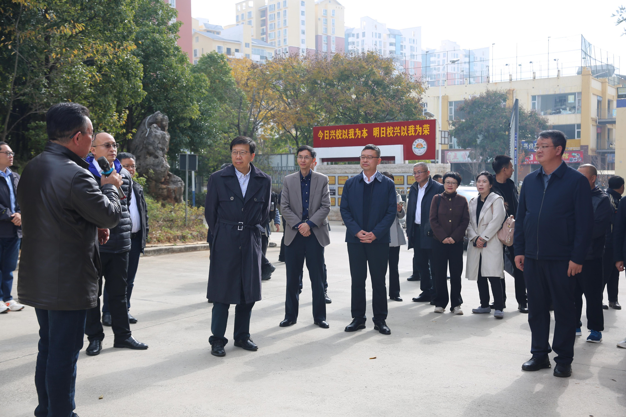 在寻甸一中,钱旭红与学校领导、教师和学生代表亲切交流,与华东师大正在寻甸一中开展教研指导的李政涛教授、朱益明教授进行了工作探讨。在与华东师大寻甸实验班学生合影后,看到同学们迟迟不愿离去,他深情地向同学们寄语,鼓励同学们建立自信、珍惜时间、刻苦学习,他表示,华东师大愿做同学们的坚强后盾,为同学们保驾护航,并祝福同学们未来考上理想的大学。