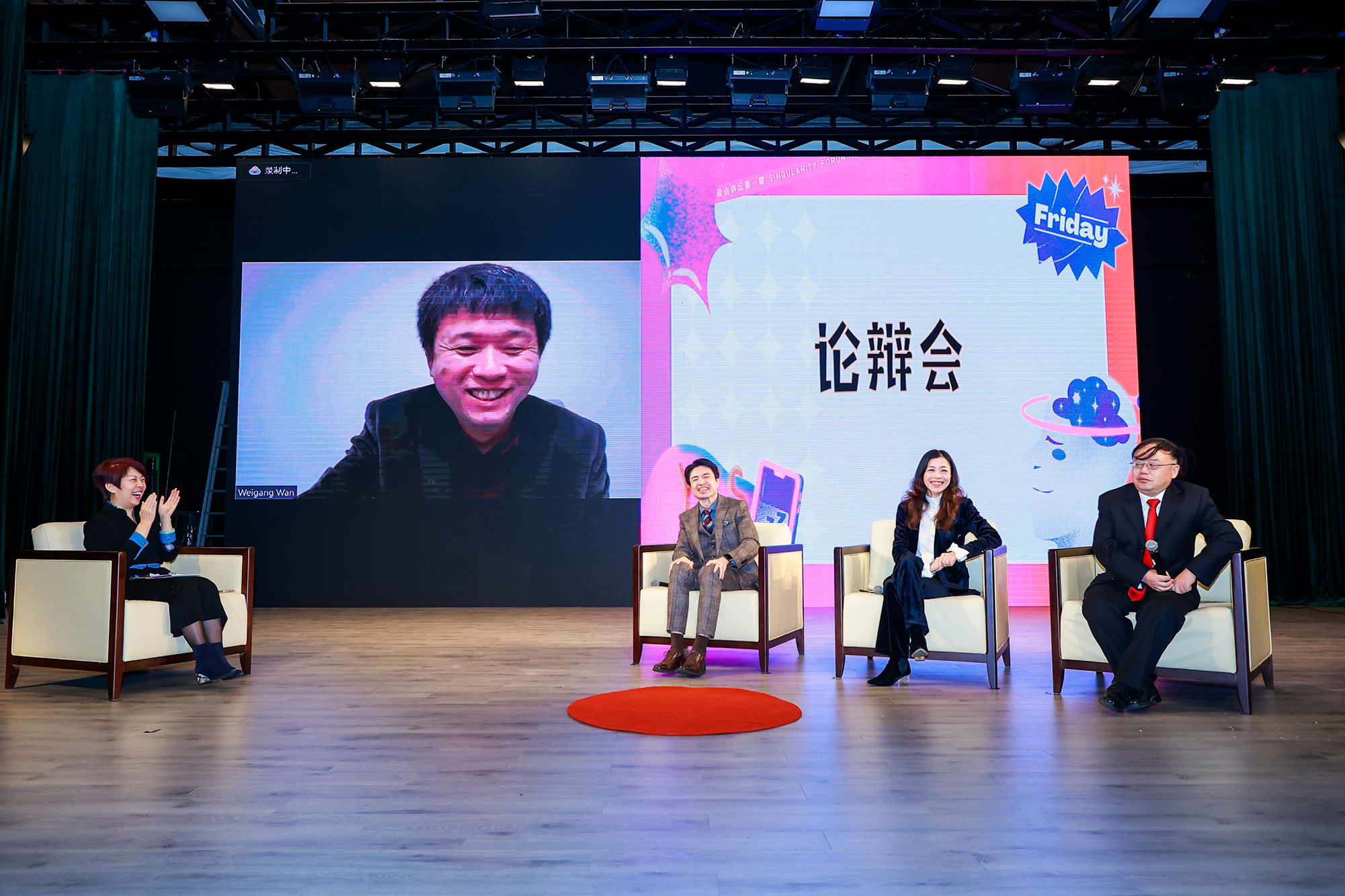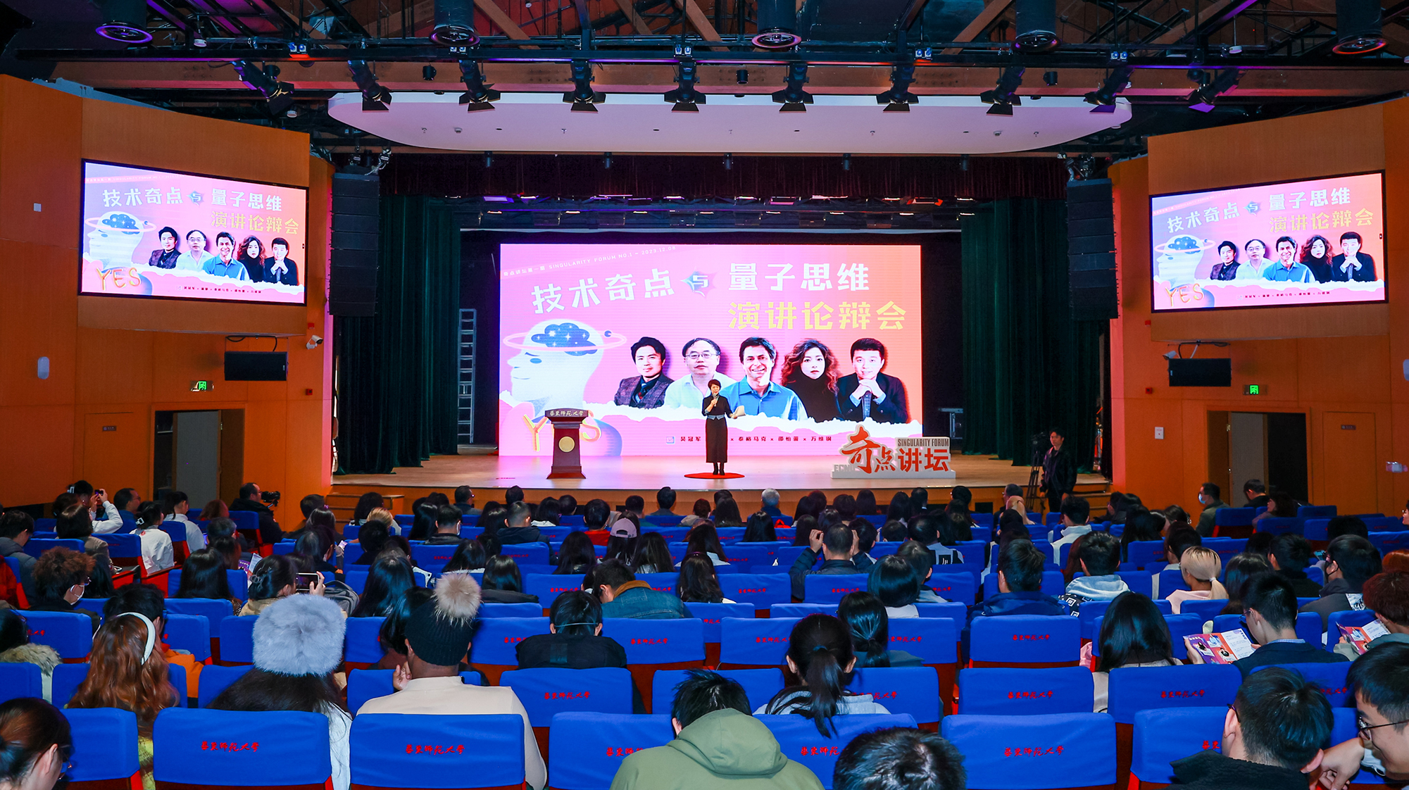 在辩论会阶段,演讲嘉宾们围绕“现实的真相”“面向奇点的思索”两个主题展开辩论,深入探讨了“量子力学如何影响世界观”“我们应如何看待人工智能”等问题,提出了许多新颖而深刻的观点。嘉宾们结合哲学思维与物理思维,从多个角度出发探讨AI的优缺点及量子思维的应用模式,鼓励同学们在未来的学习实践中不断推进人文科学与AI的融合,推进人与AI的和谐共存。