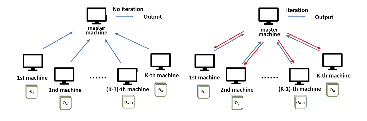 基于U统计量的经验风险最小化涵盖了广泛的应用领域,包括成对排序和生存分析等,其难点在于计算复杂度随着样本量增加呈多项式阶增长。基于分块集成策略提出了两种高效分布式算法:第一种方法将扩展了替代似然思想,对高阶梯度进行局部近似和逼近;第二种方法将M估计中的一步更新思想扩展到成对损失。建立了所得估计量的统计推断理论,证明了算法可以在高维情形下实现高效通讯,并通过多步迭代放松对机器数量的限制,提高并行计算效率。相关成果发表在国际机器学习顶级期刊Journal of Machine Learning Research。
