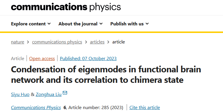 如何从统计物理与复杂网络的角度探索大脑结构与功能之间的关系是一个开放课题,物理与电子科学学院刘宗华团队最近的研究试图在脑结构网与功能网之间建立一座桥梁。不同于传统的点对相互作用模式,该研究基于系统整体信息的本征模分析,发现脑功能往往是少数或单一结构模式的凝聚,包括精神疾病亦是如此。该成果已发表于Nature旗下的Communications Physics。