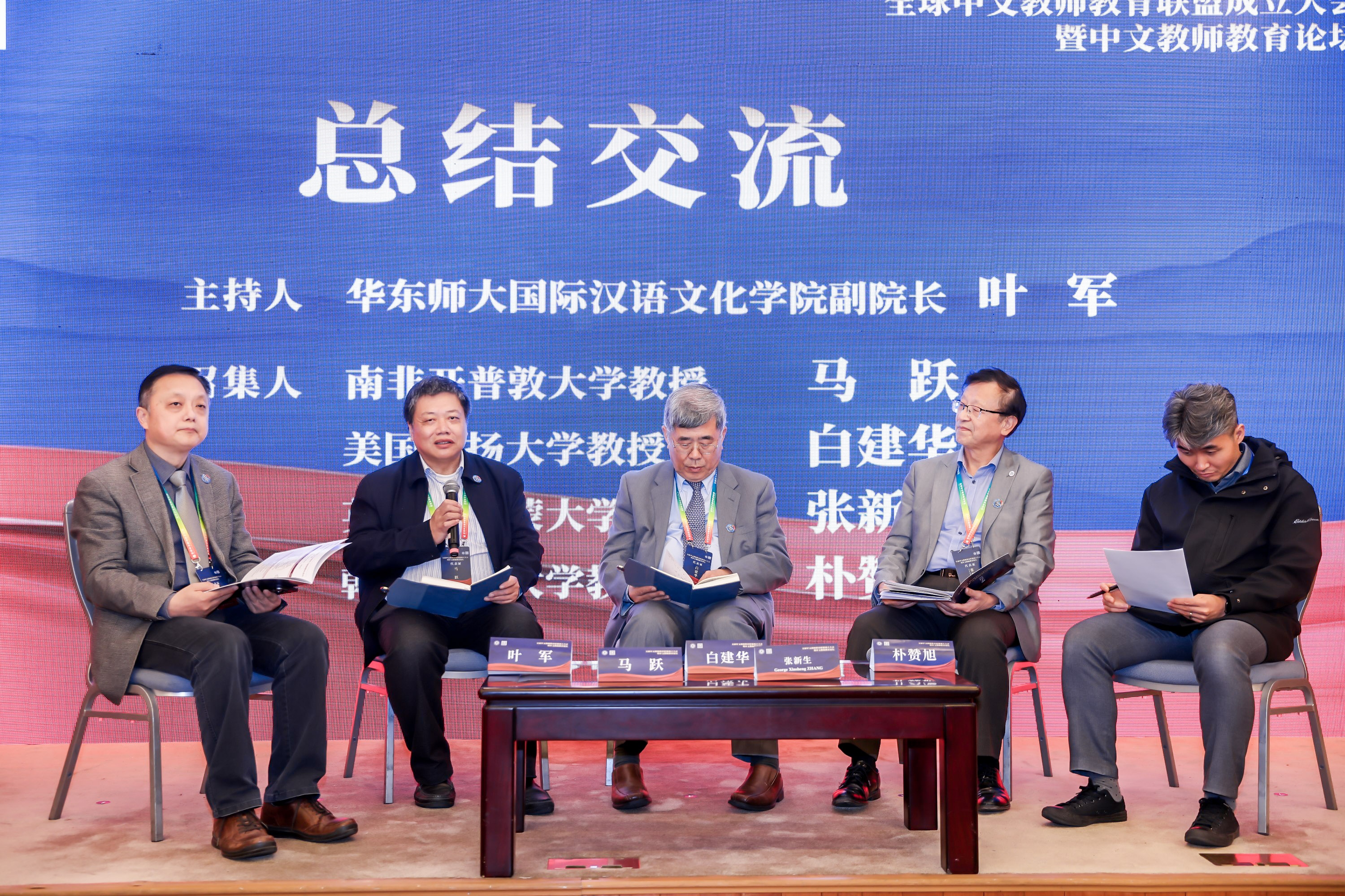参会代表围绕中文教师教育的现状、问题及对策分小组展开圆桌讨论。南非开普敦大学马跃教授、美国肯扬大学白建华教授、英国理启蒙大学张新生教授,以及韩国庆熙大学朴赞旭教授作为各组召集人进行交流分享。